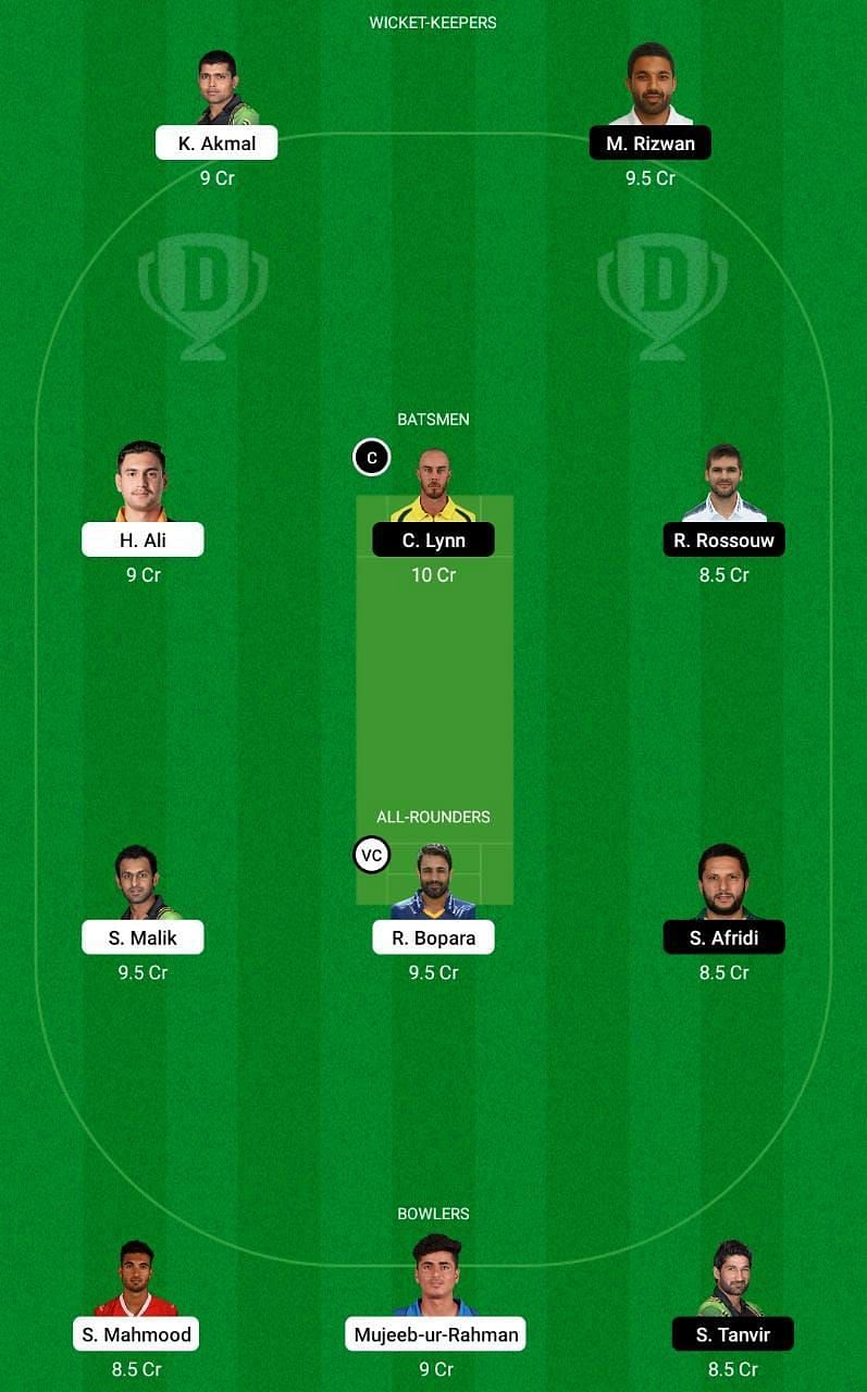 Fantasy Suggestion #1: Mohd Rizwan, Kamran Akmal, Haider Ali, Chris Lynn, Rilee Rossouw, Shoaib Malik, Ravi Bopara, Shahid Afridi, Saqib Mahmood, Mujeeb ur Rehman and Sohail Tanvir