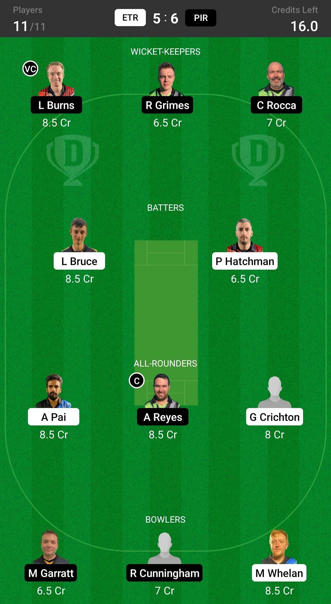 A Pai and A Reyes are the best all-rounder picks for the Dream11 team as they are batting in the top order and also completing their quota of overs. G Crichton is another good pick for today's Dream11 team.