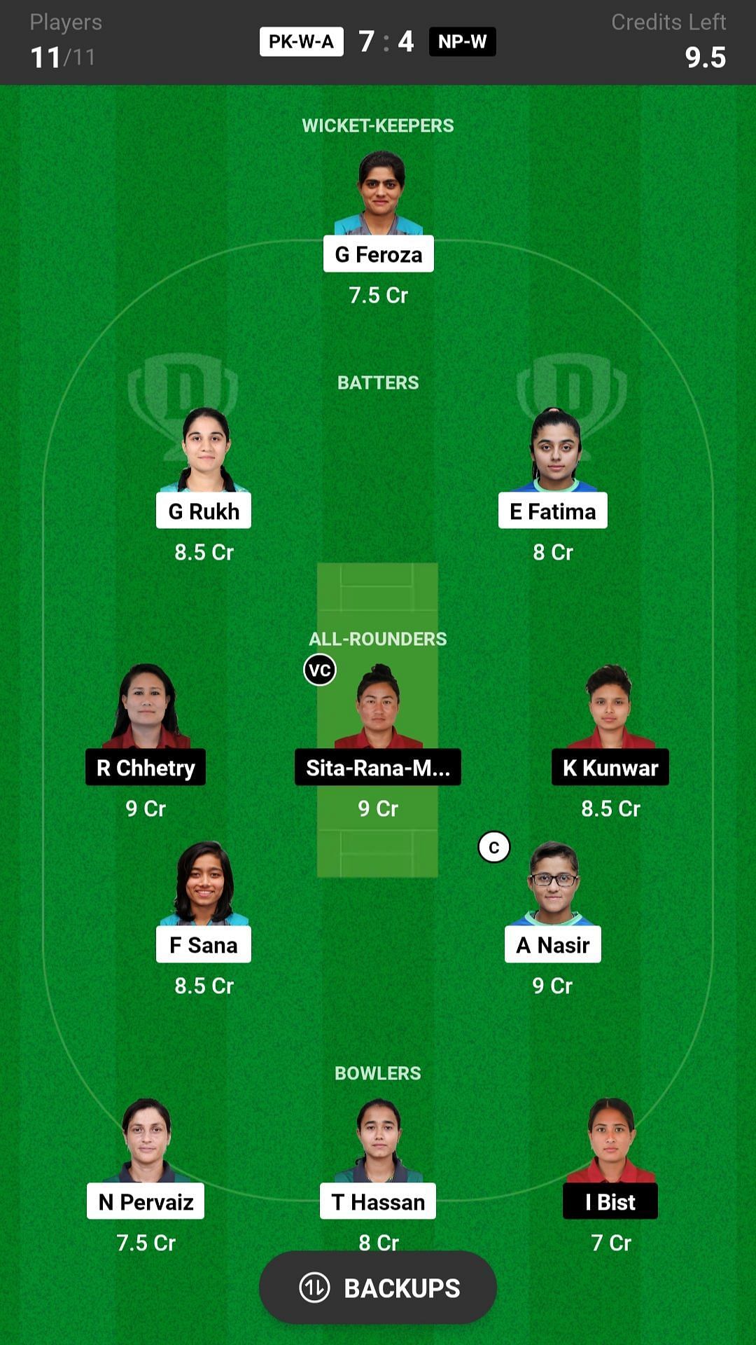 Since the pitch is well-balanced, you can make S Rana Magar the captain as she will bat in the top order and bowl in the death overs. You can make her the captain of the grand league teams.