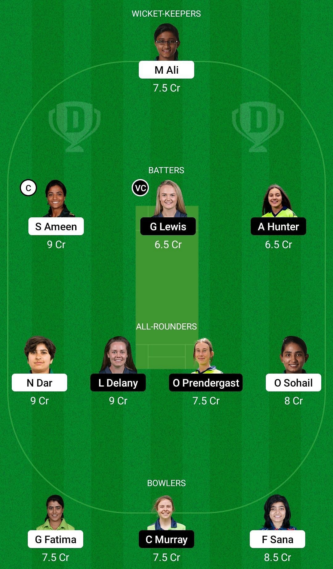 Bowlers: Ghulam Fatima, Cara Murray, Fatima Sana