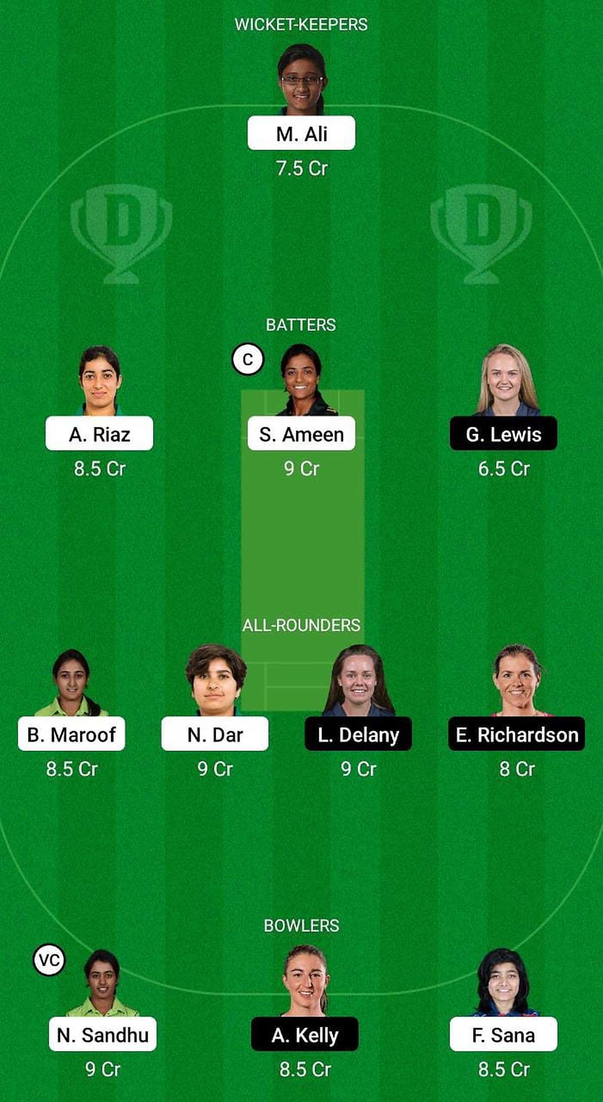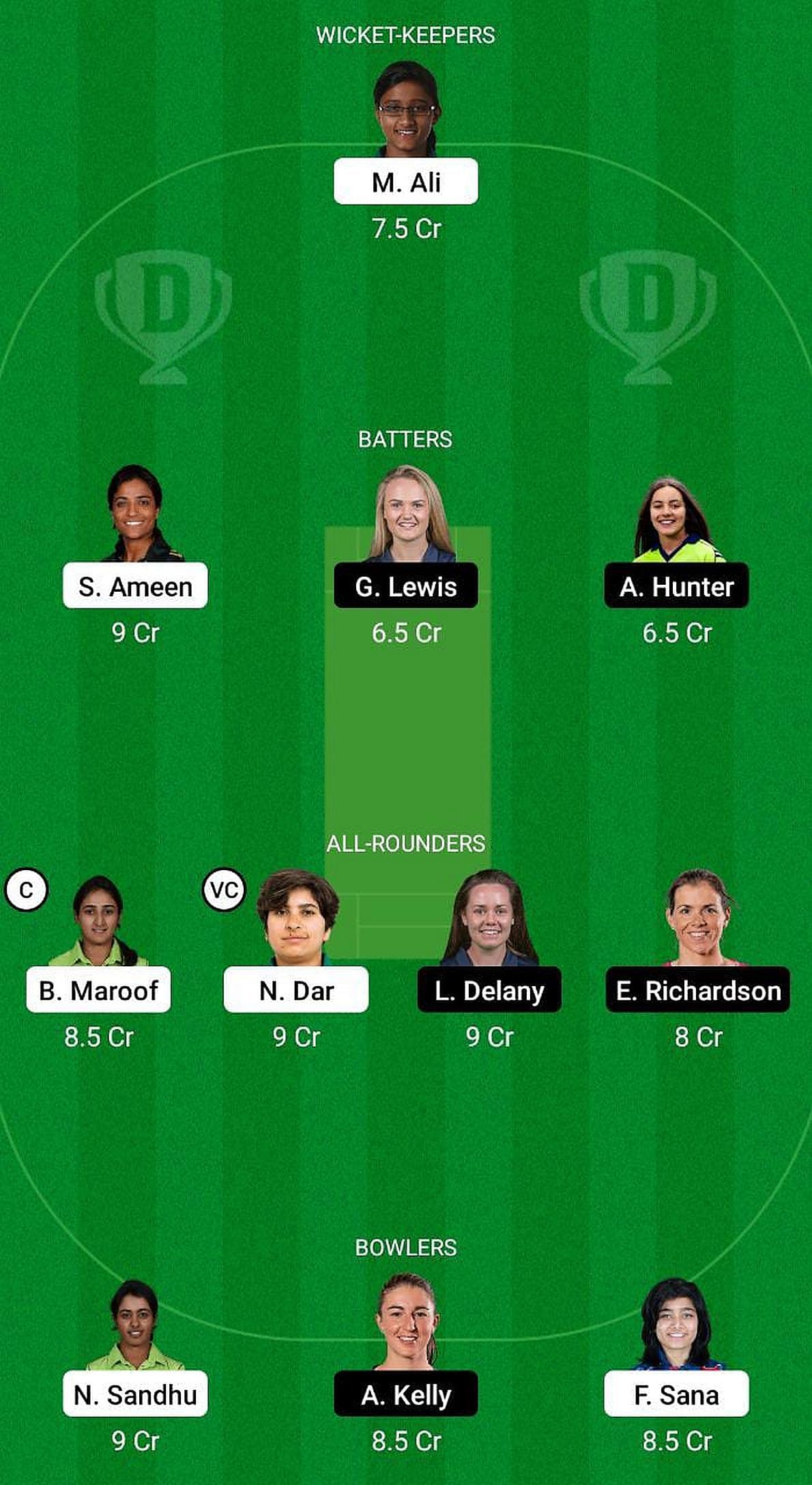 Ameen has been an effective batter in the format and doesn't need any introduction given her current form. She has scored 267 runs at an excellent average of 267.00 in two games and is a must-have for your fantasy team.