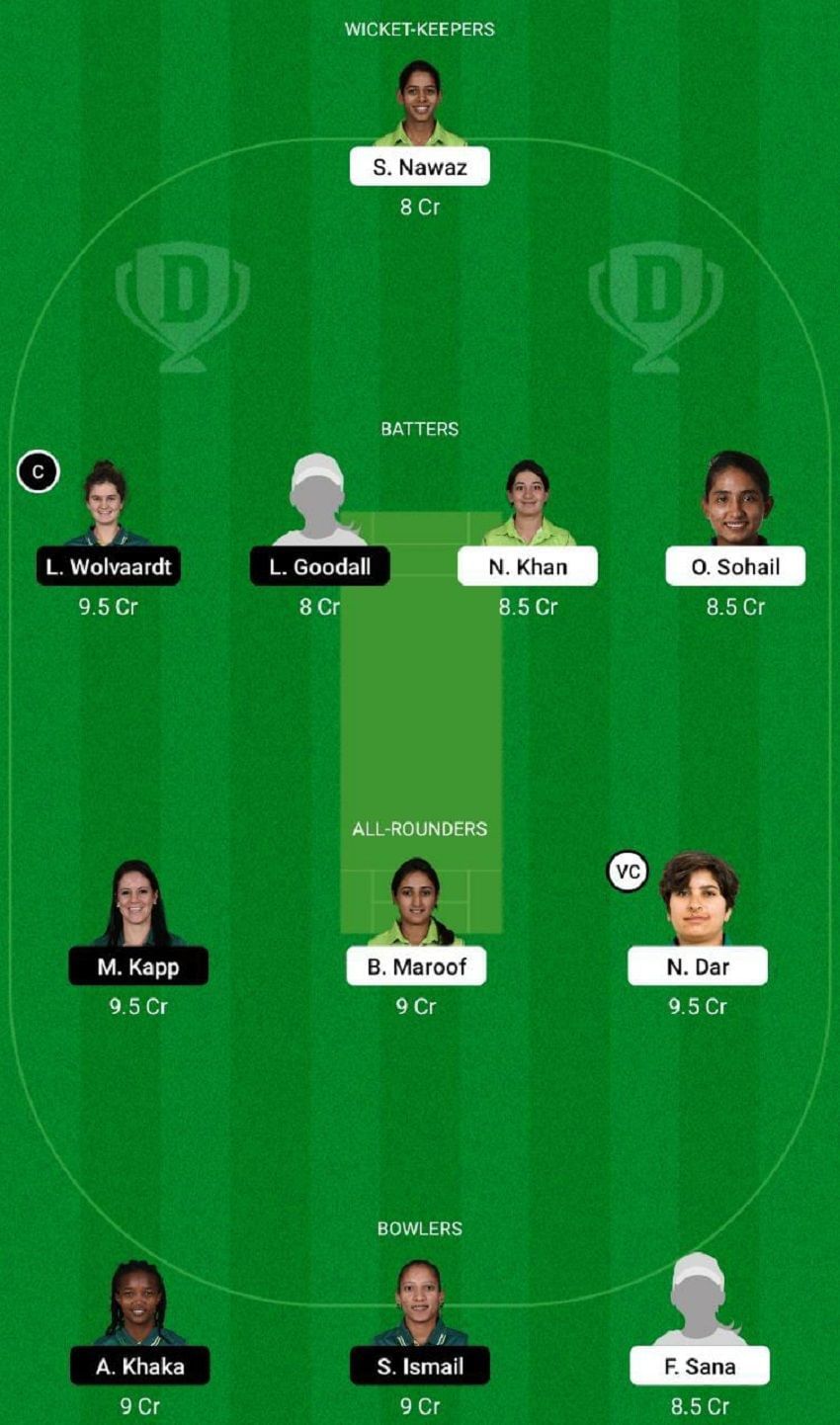Fantasy Suggestion #1: Sidra Nawaz, Laura Wolvaardt, Lara Goodall, Nahida Khan, Omaima Sohail, Marizanne Kapp, Bismah Maroof, Nida Dar, Ayabonga Khaka, Shabnim Ismail and Fatima Sana.
