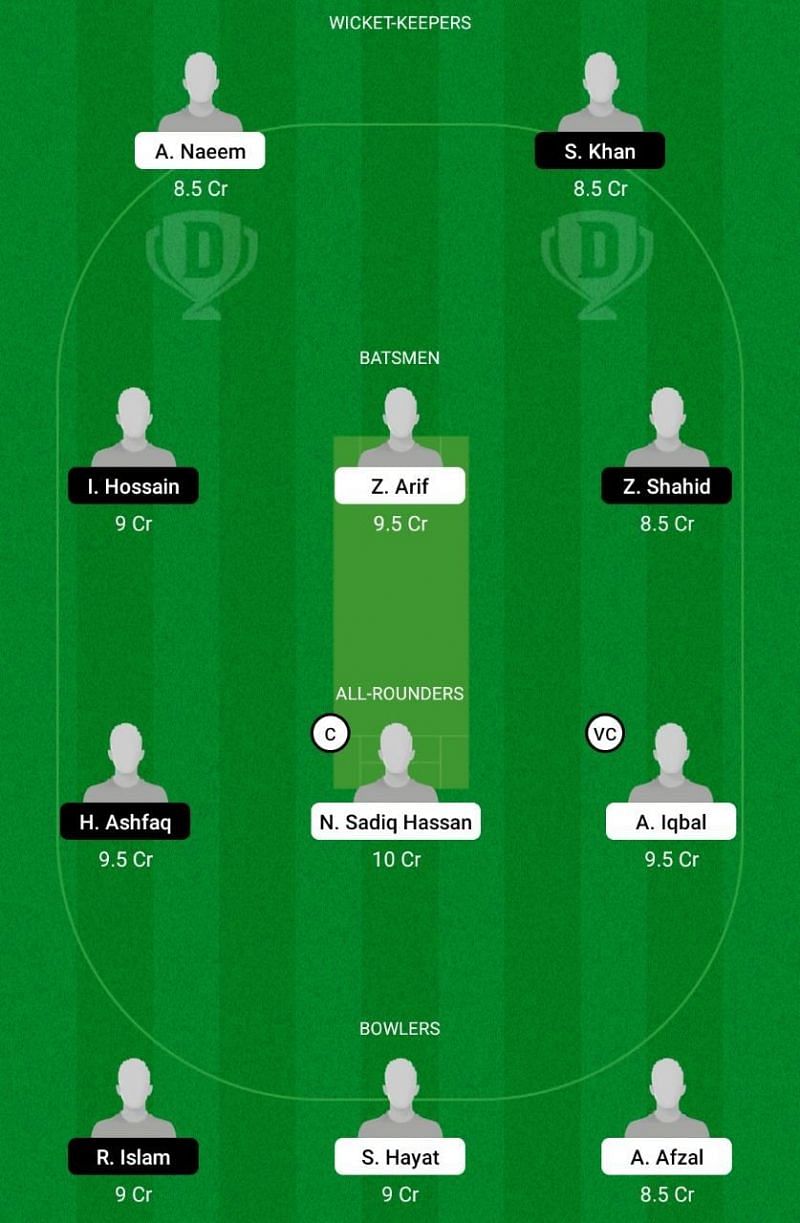 Fantasy Suggestion #1: Amar Naeem, Shahdath Khan, Iqbal Hossain, Zayed Shahid, Zeshan Arif, Aqib Iqbal, Hassan Ashfaq, Naveed Hassan, Adal Afzal, Rafat Islam, Sikander Hayat