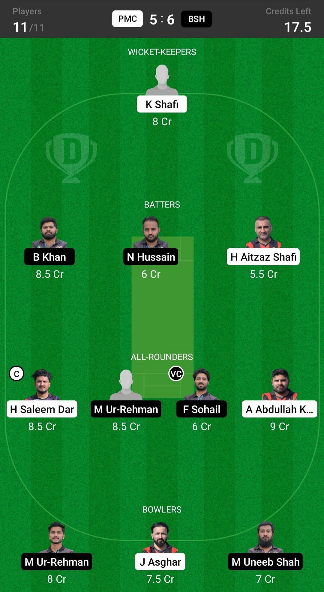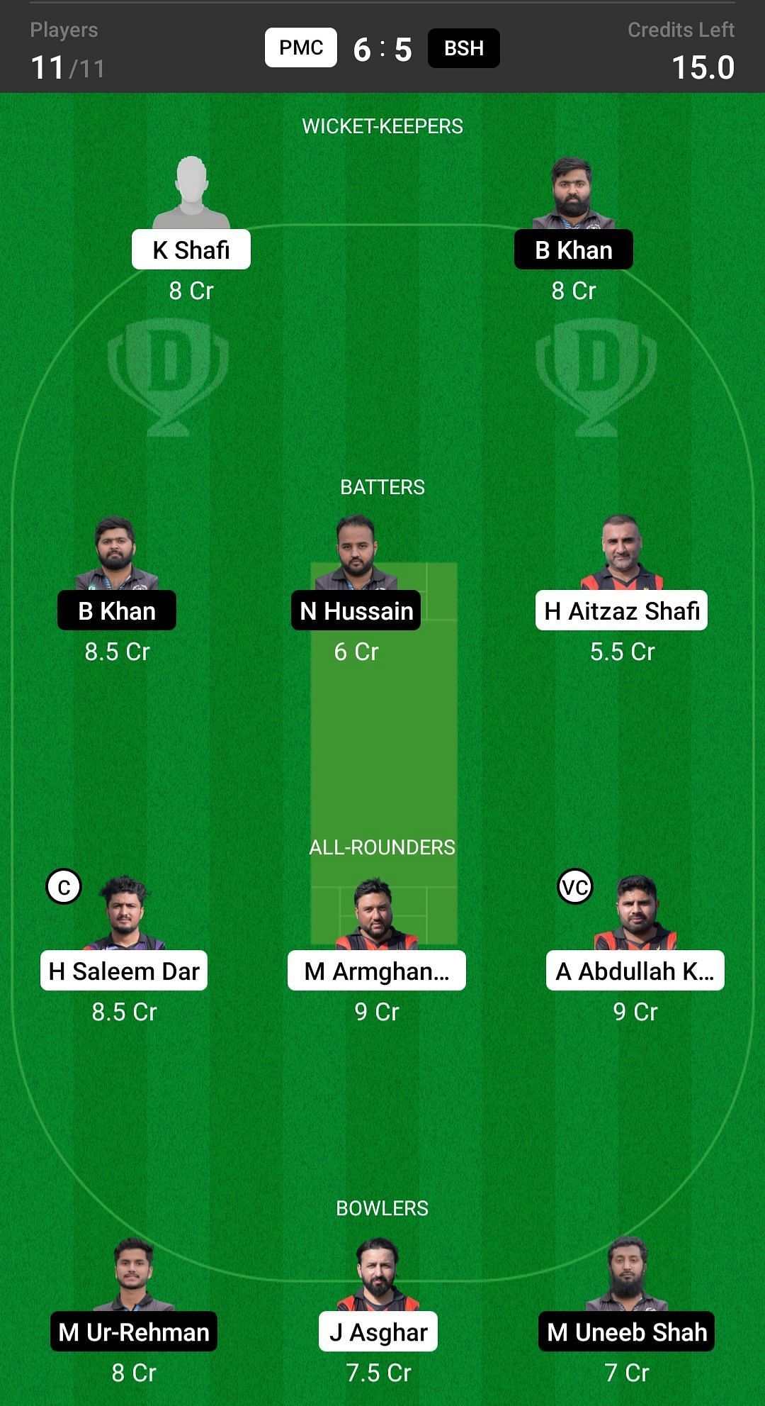 PMC vs BSH match captain and vice-captain choices