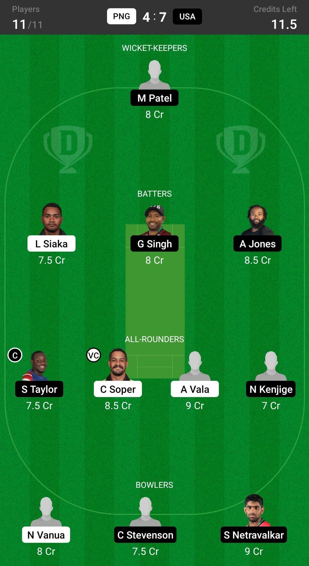 PNG vs USA match captain and vice-captain choices