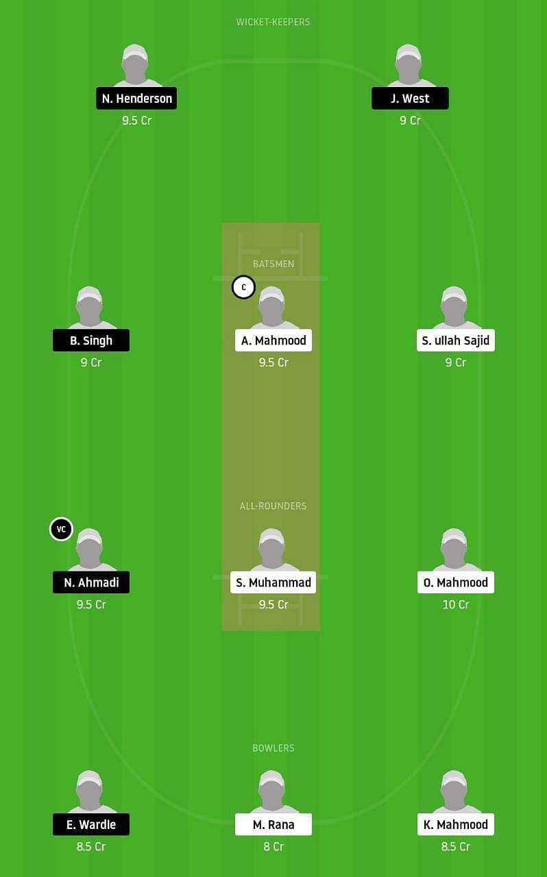Fantasy Suggestion #1: N Henderson, J West, B Singh, A Mahmood, S Sajid, N Ahmadi, S Muhammad, O Mahmood, E Wardle, M Rana and K Mahmood.