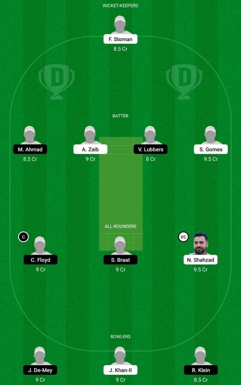 Fantasy Suggestion #1: F Stoman, A Zaib, M Ahmad, V Lubbers, S Gomes, C Floyd, S Braat, N Shahzad, J de Mey, J Khan and R Klein