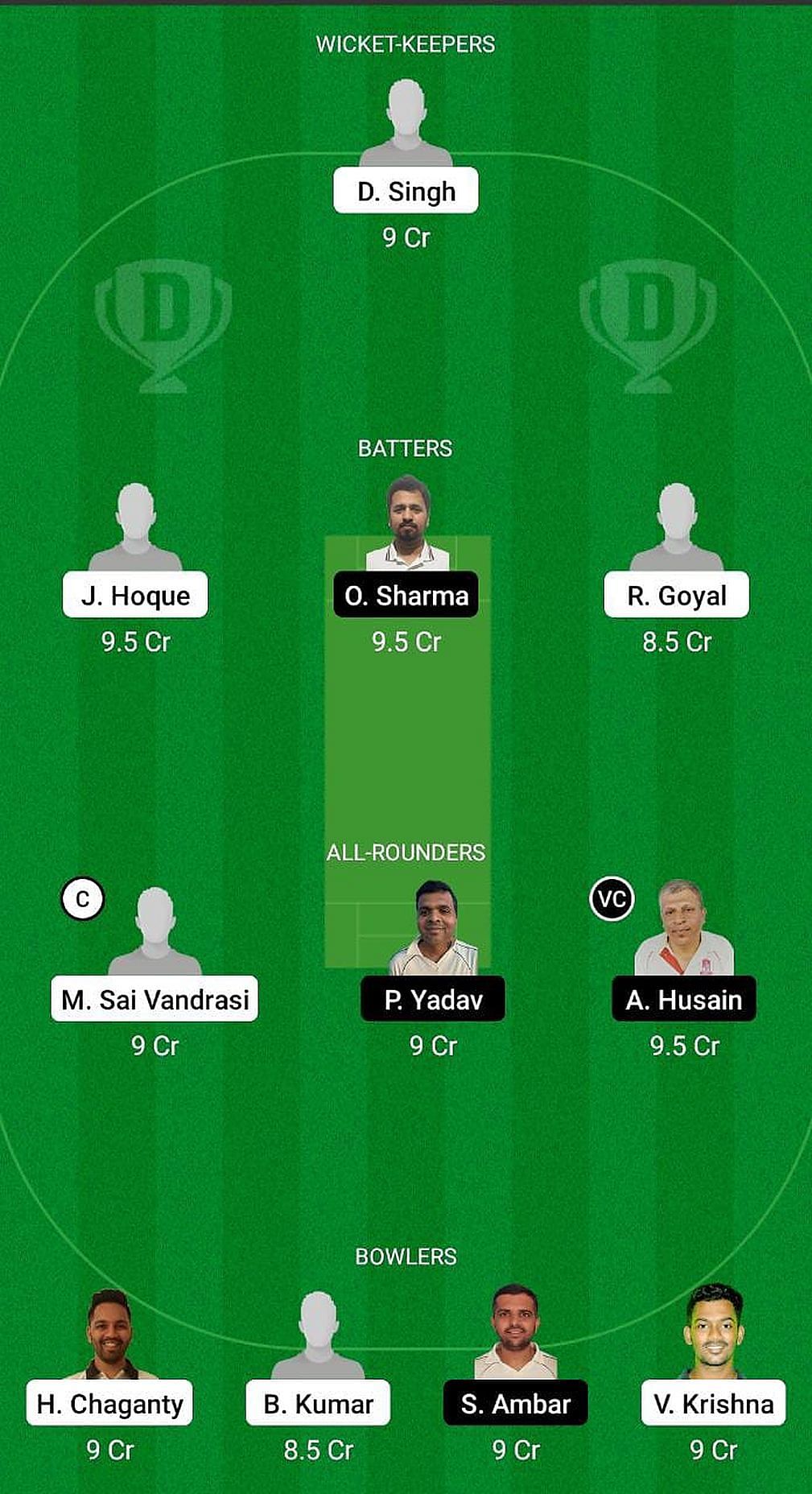Fantasy Suggestion #1: Divyendra Singh, Jahanur Hoque, Om Sharma, Rohit Goyal, Murali Vandrasi, Aamir Hussain, Prem Yadav, Harsha Chaganty, Birendra Kumar, Sunil Amber, Vamshi Madishetty.