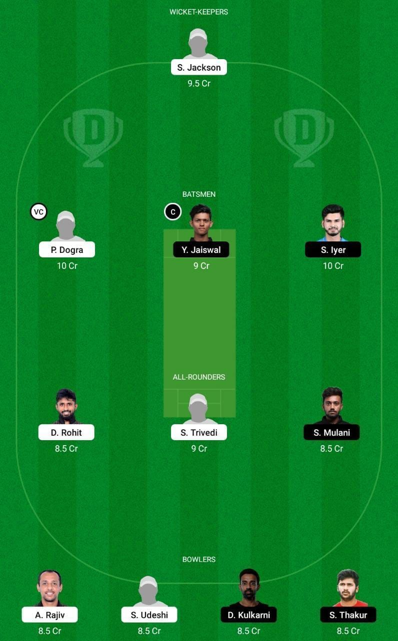 Fantasy Suggestion #1: S Jackson, S Iyer, Y Jaiswal, P Dogra, D Rohit, S Mulani, S Trivedi, D Kulkarni, A Rajiv, S Udeshi, and S Thakur
