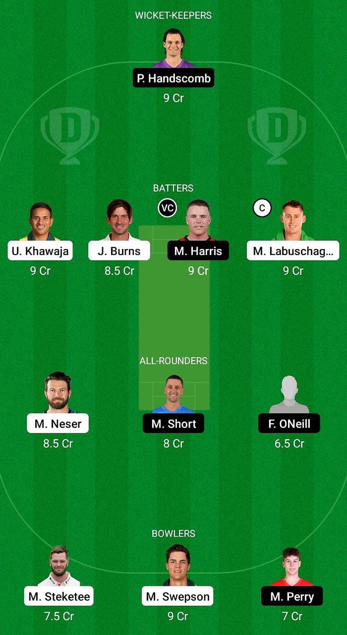 Batters: Usman Khawaja, Joe Burns, Marcus Harris (vc), Marnus Labuschagne (c).