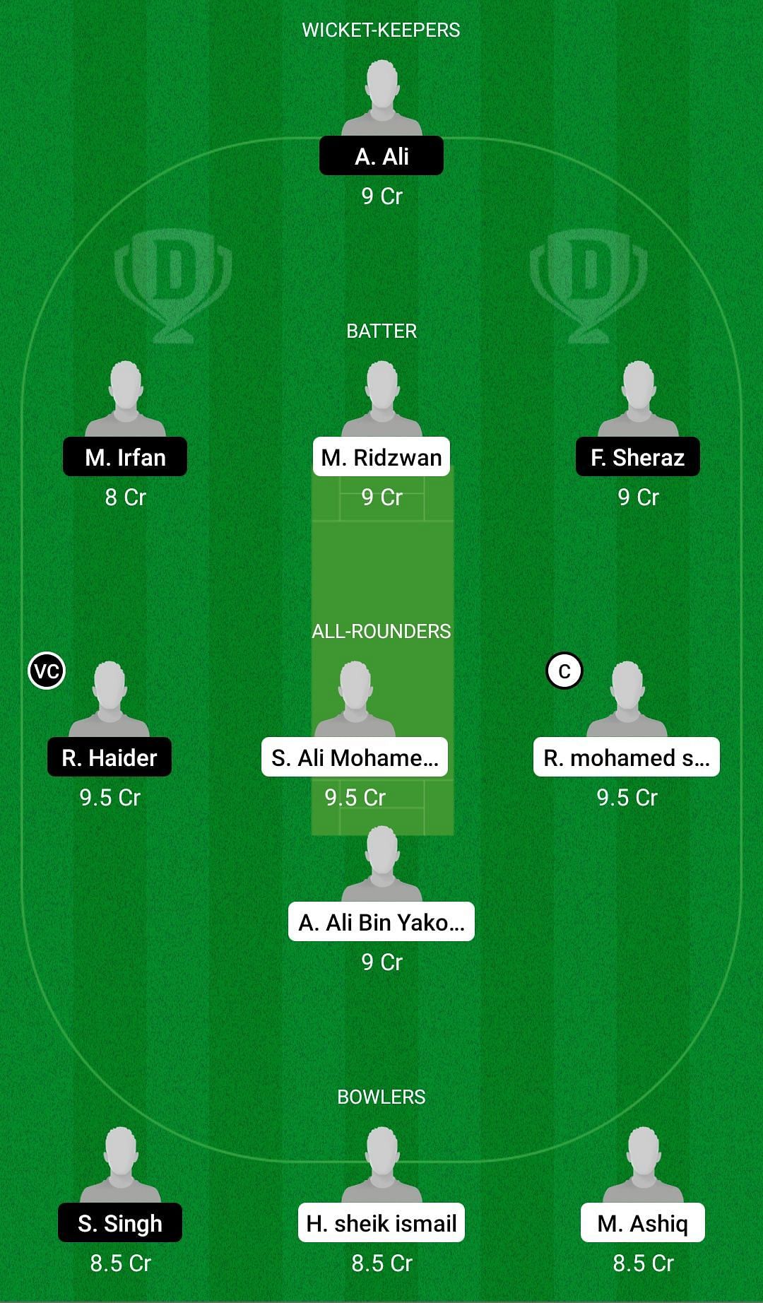 Captain: Raj Mohamed Vice-Captain: Rizwan Haider