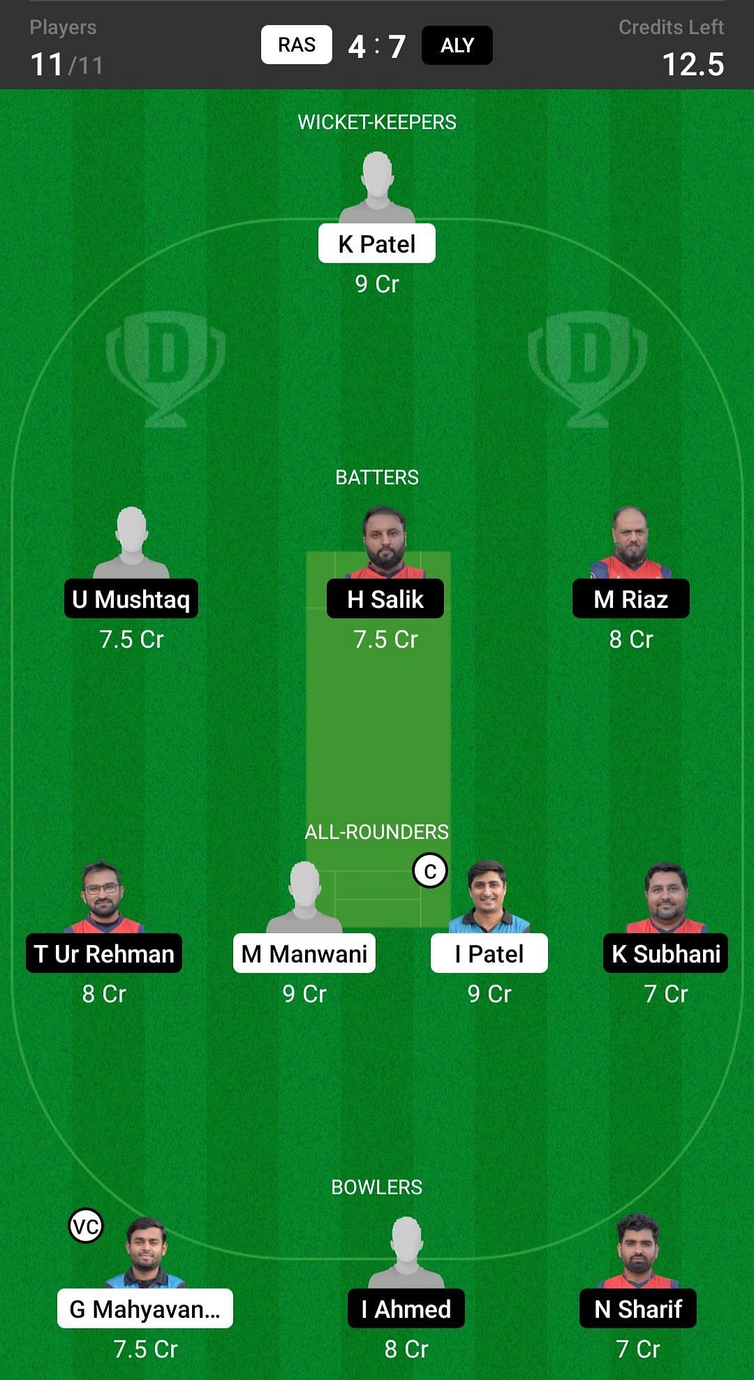 RAS vs ALY match captain and vice-captain choices