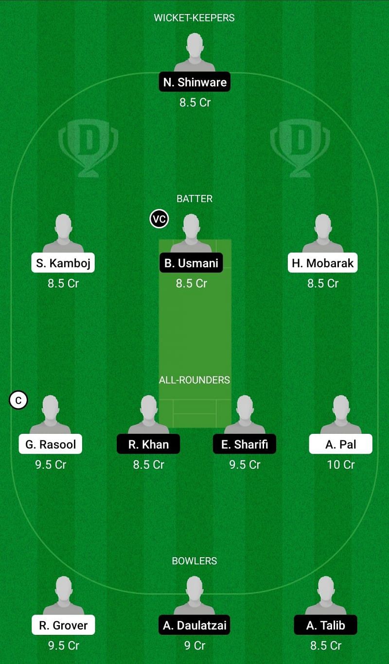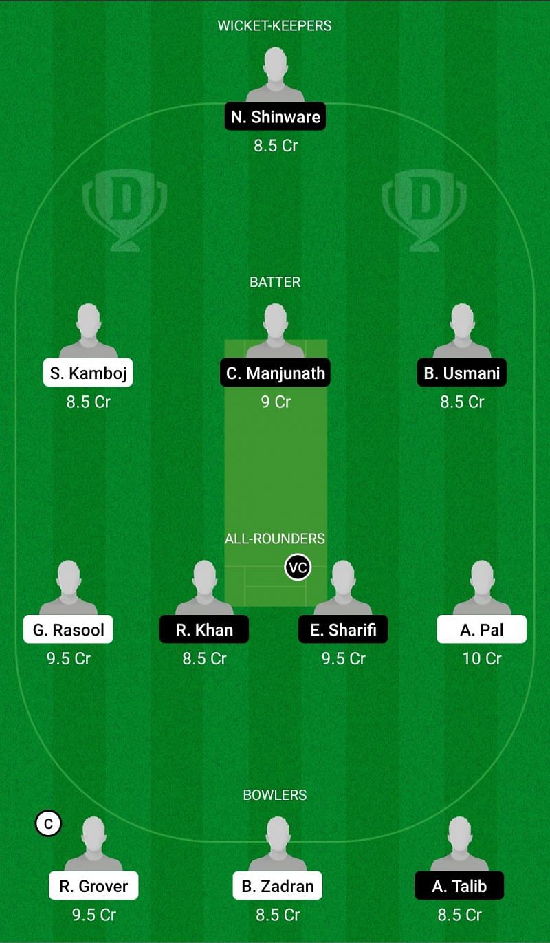 Captain: Rahul Grover. Vice-Captain: Ehsanullah Sharifi.