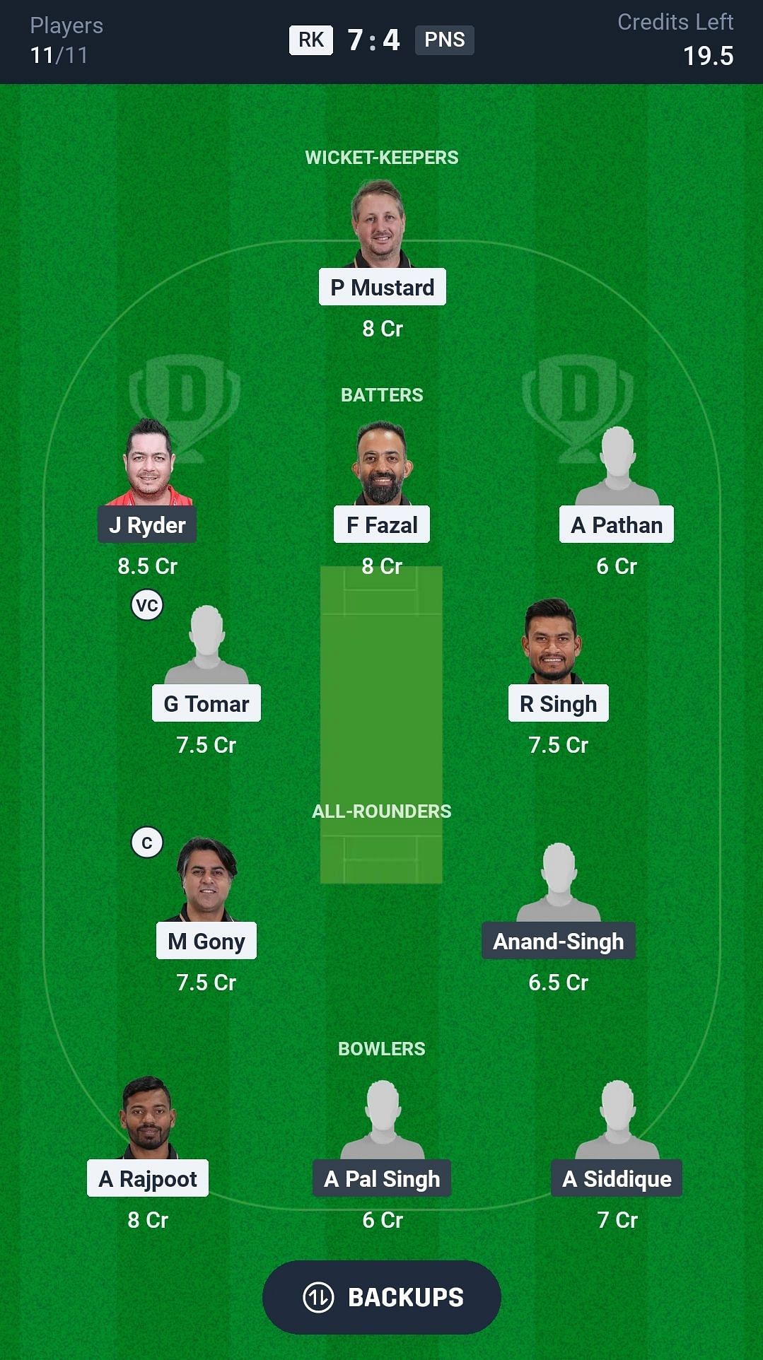 RK vs PNS match captain and vice-captain choices