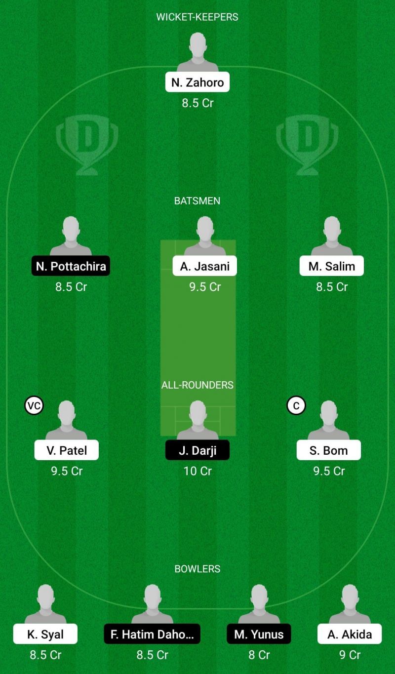 Fantasy Suggestion #1: Nassoro Zahoro, Arshan Jasani, Mohamed Salim, Vishal Patel, Sanjay Bom, Kartik Syal, Abdurrahman Akida, Nandakishan Pottachira, Jatin Darji, Firoz Hatim Dahodwala, Mohammed Yunus