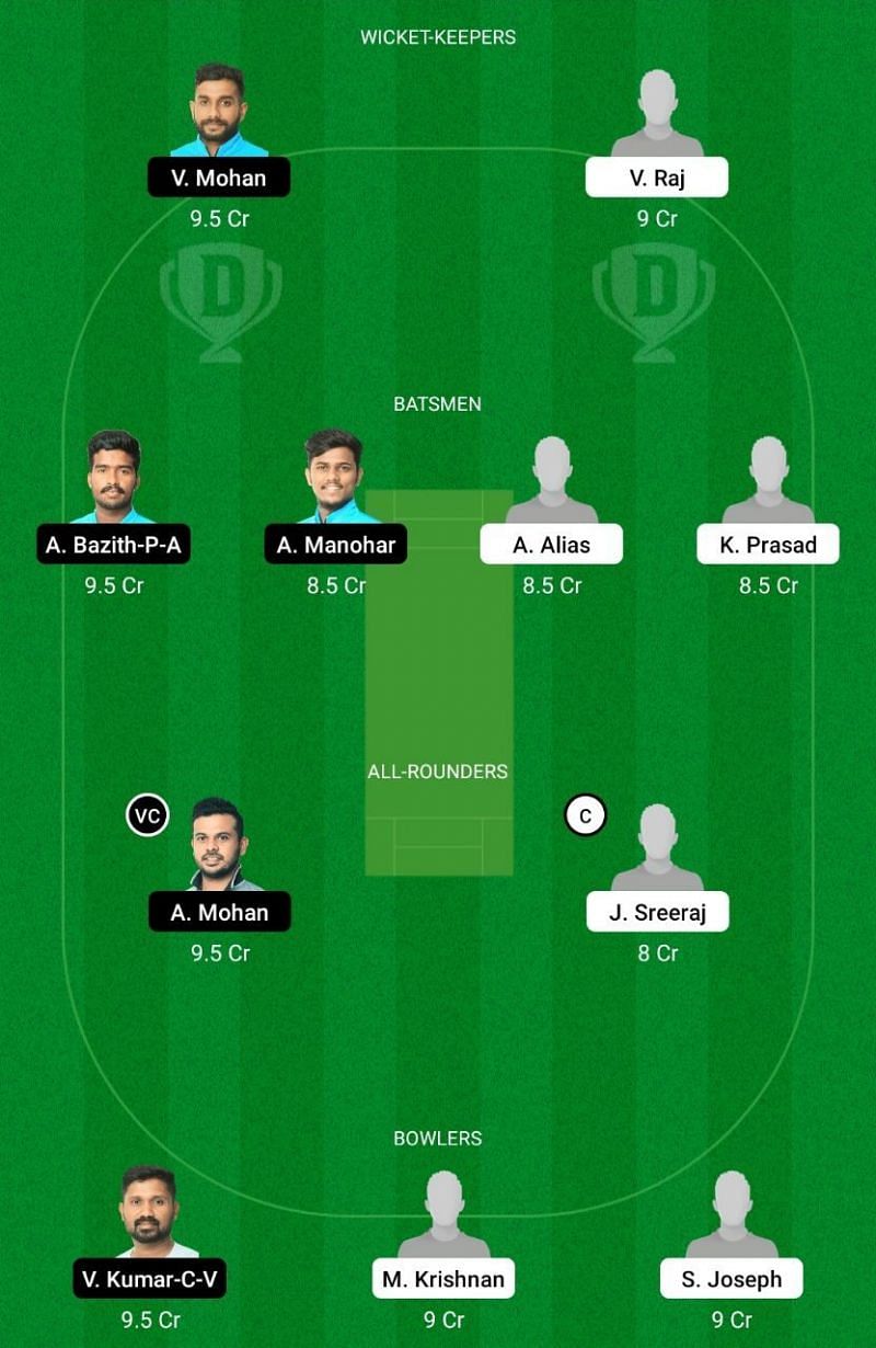 Captain: JR Sreeraj Vice-Captain: Abhishek Mohan