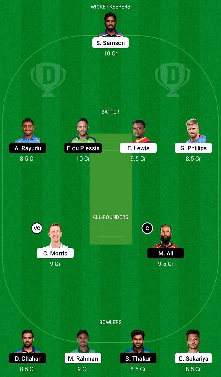 Fantasy Suggestion #2: Sanju Samson, Ambati Rayudu, Faf du Plessis, Evin Lewis, Glenn Phillips, Chetan Sakariya, Chris Morris, Moeen Ali, Mustafizur Rahman, Shardul Thakur and Deepak Chahar