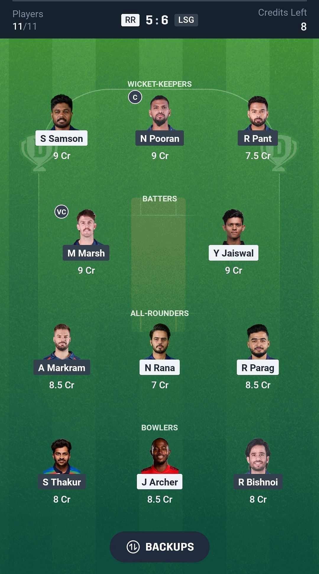 Rajasthan Royals vs Lucknow SuperGiants Dream11 Prediction Today, Grand League