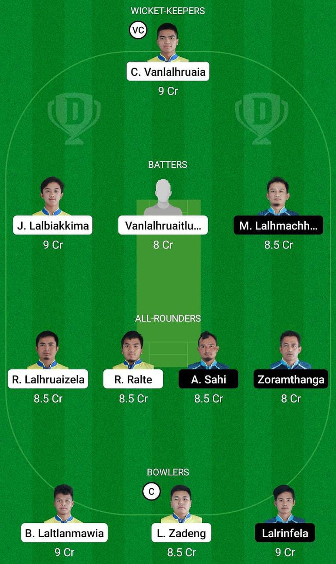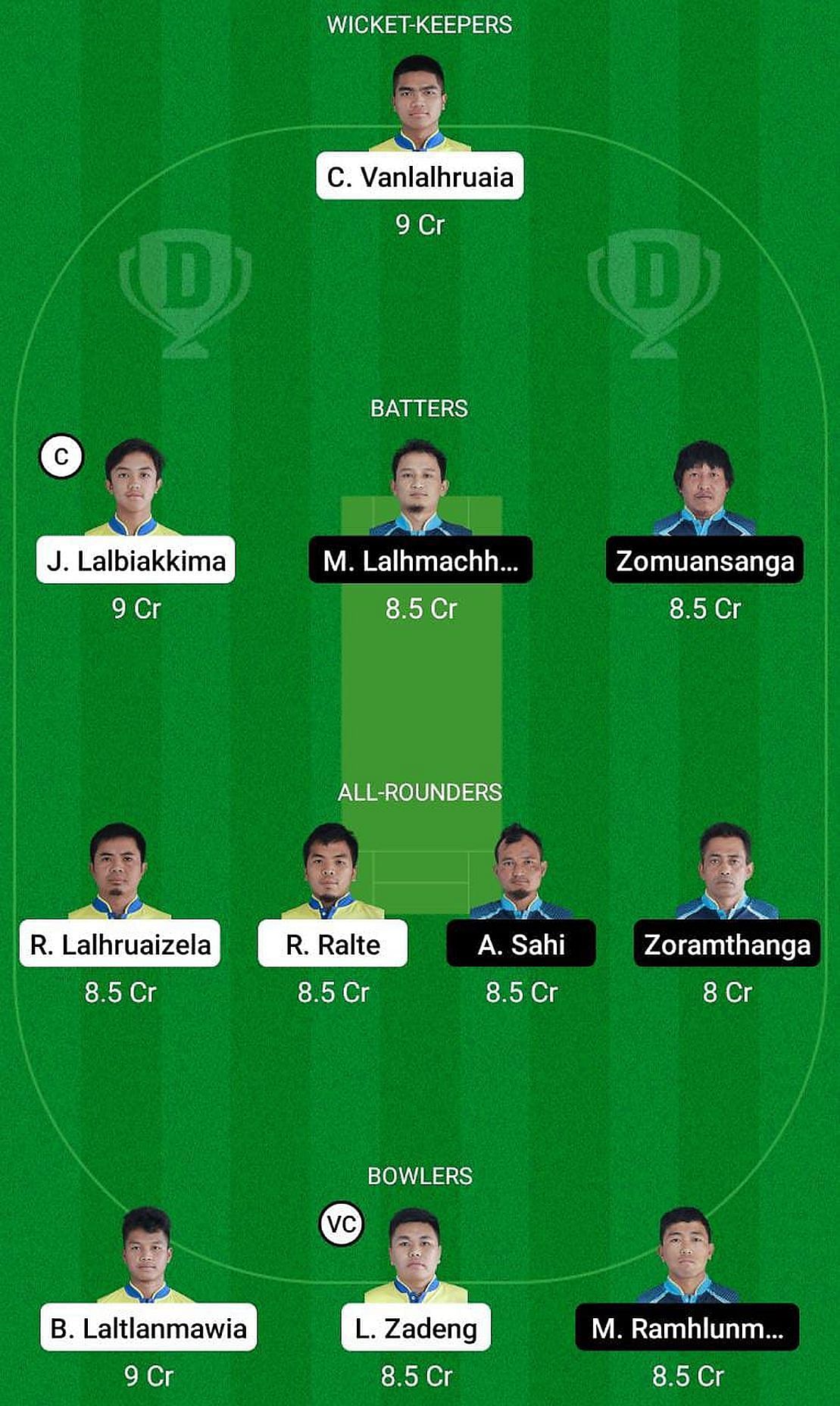 Captain: Lalrinfela Zadeng. Vice-captain: C Vanlalhruaia.
