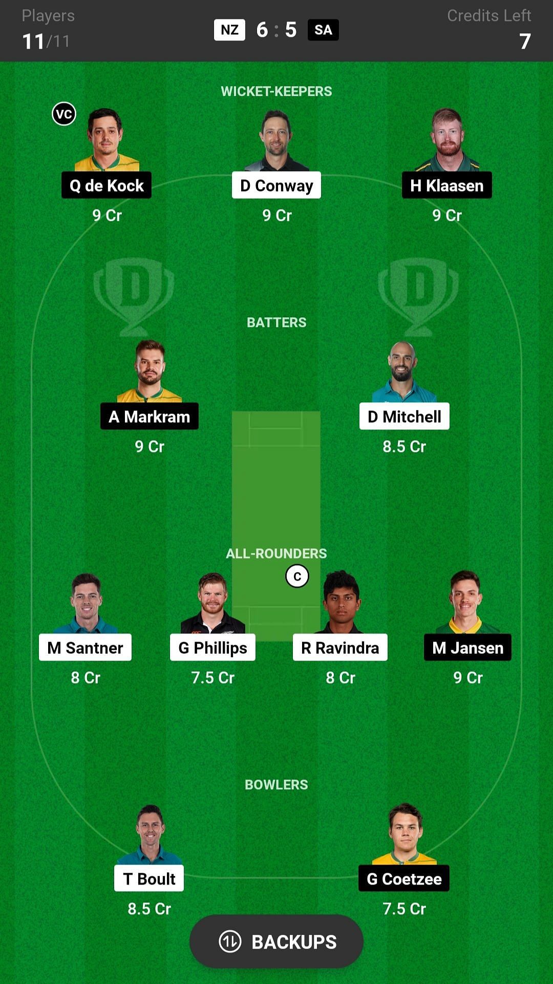 As the pitch is expected to be good for both batters and bowlers, it is advisable to pick a good number of all-rounders in your SA vs NZ Dream11 fantasy team. Making them the captain or vice-captain is another good way to gain maximum points and win grand leagues.
