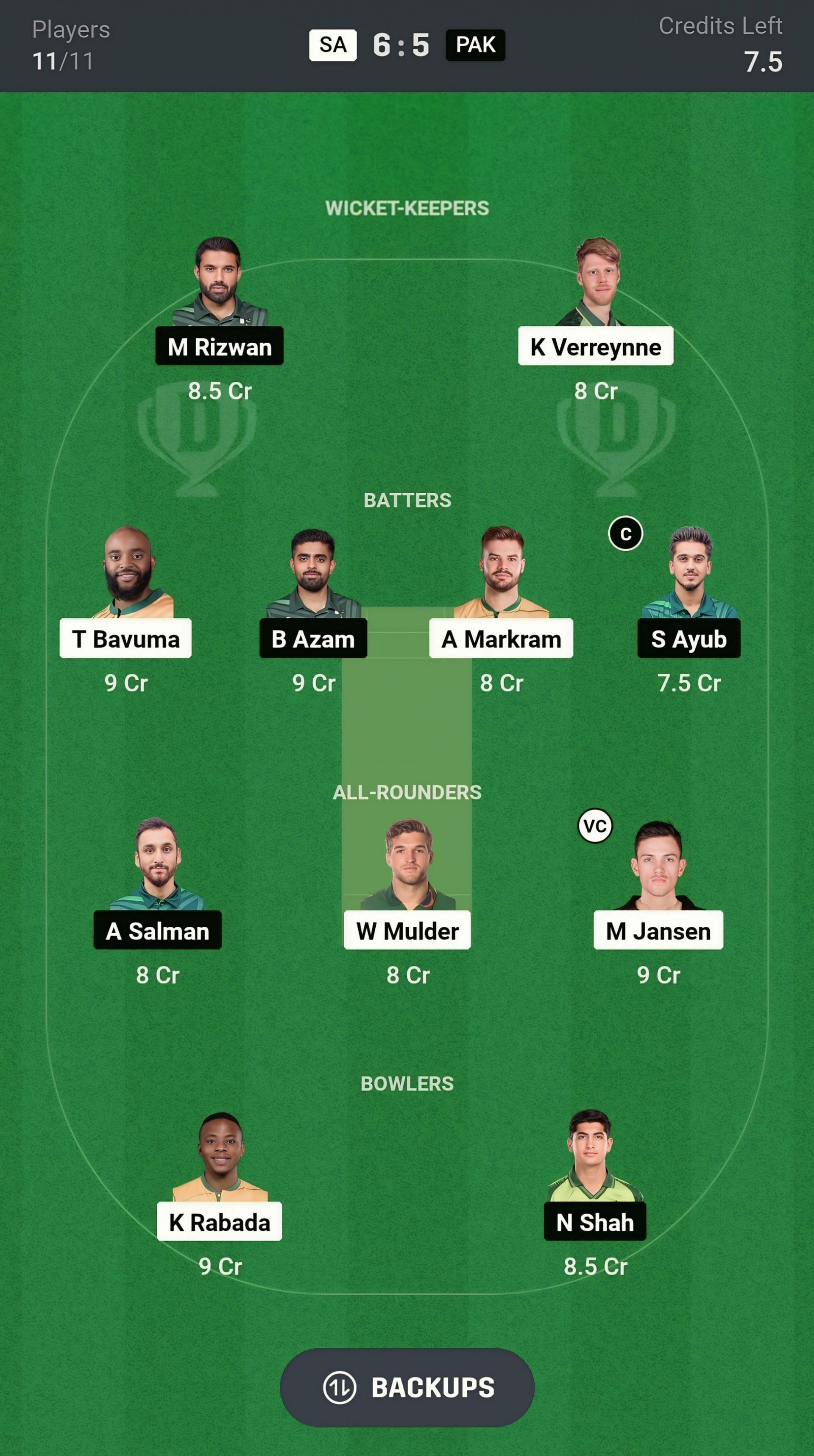 Agha Salman and Marco Jansen are the best all-rounder picks for the Dream11 team. Both the all-rounders are in top-notch form. Marco Jansen has scored 426 runs and taken 63 wickets in just 15 Tests. Aamir Jamal and Wiann Mulder are other good all-rounder picks for today's match.
