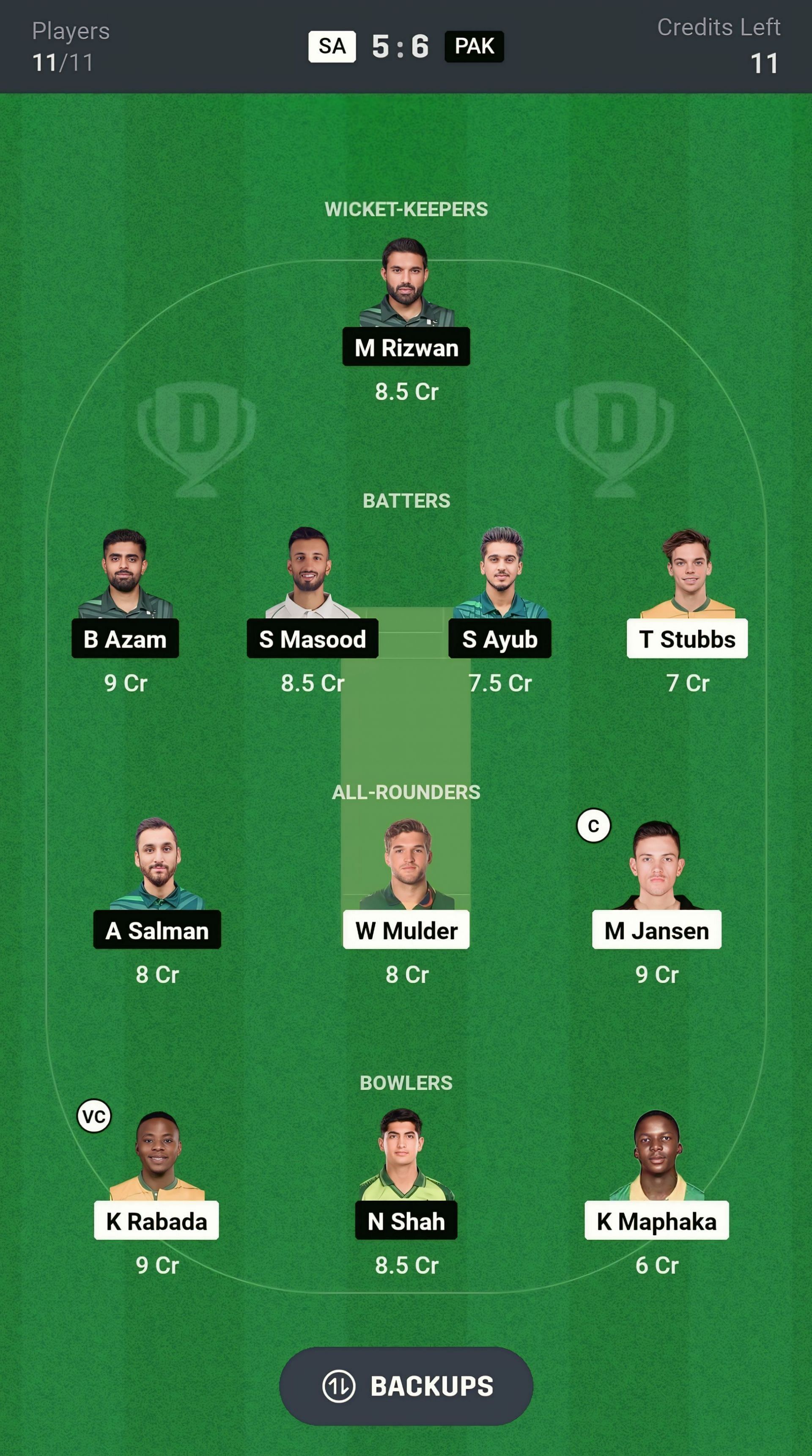 South Africa vs Pakistan Dream11 Prediction Today, Grand League