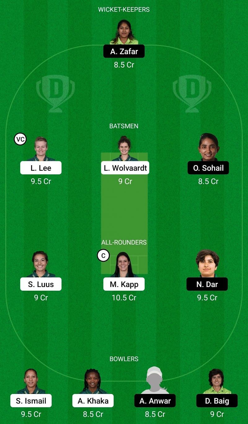 Fantasy Suggestion #1: Ayesha Zafar, Lizelle Lee, Laura Wolvaardt, Omaima Sohail, Sune Luus, Marizanne Kapp, Nida Dar, Shabnim Ismail, Ayabonga Khaka, Aiman Anwer, Diana Baig.