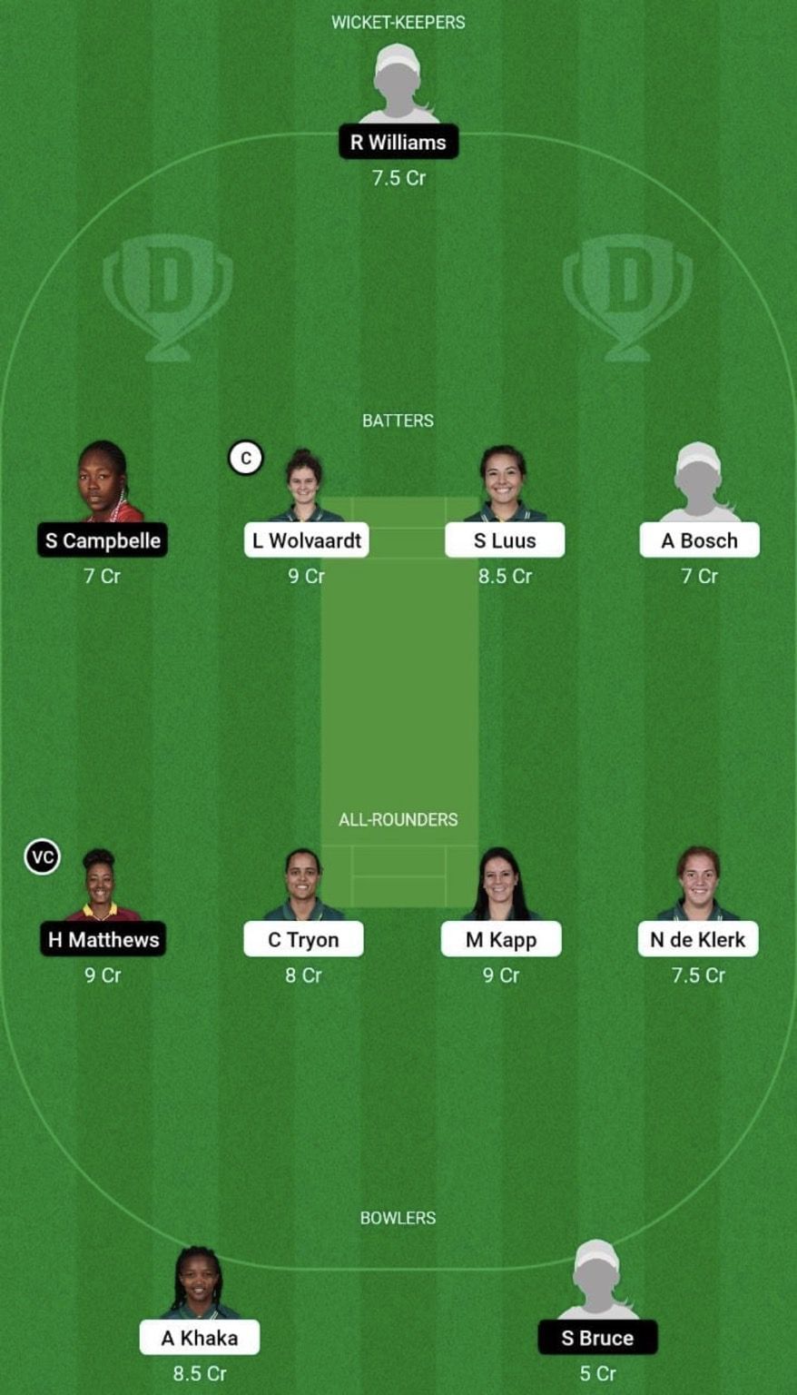Batters: Shemaine Campbelle, Laura Wolvaardt (c), Sune Luus, Anneke Bosch