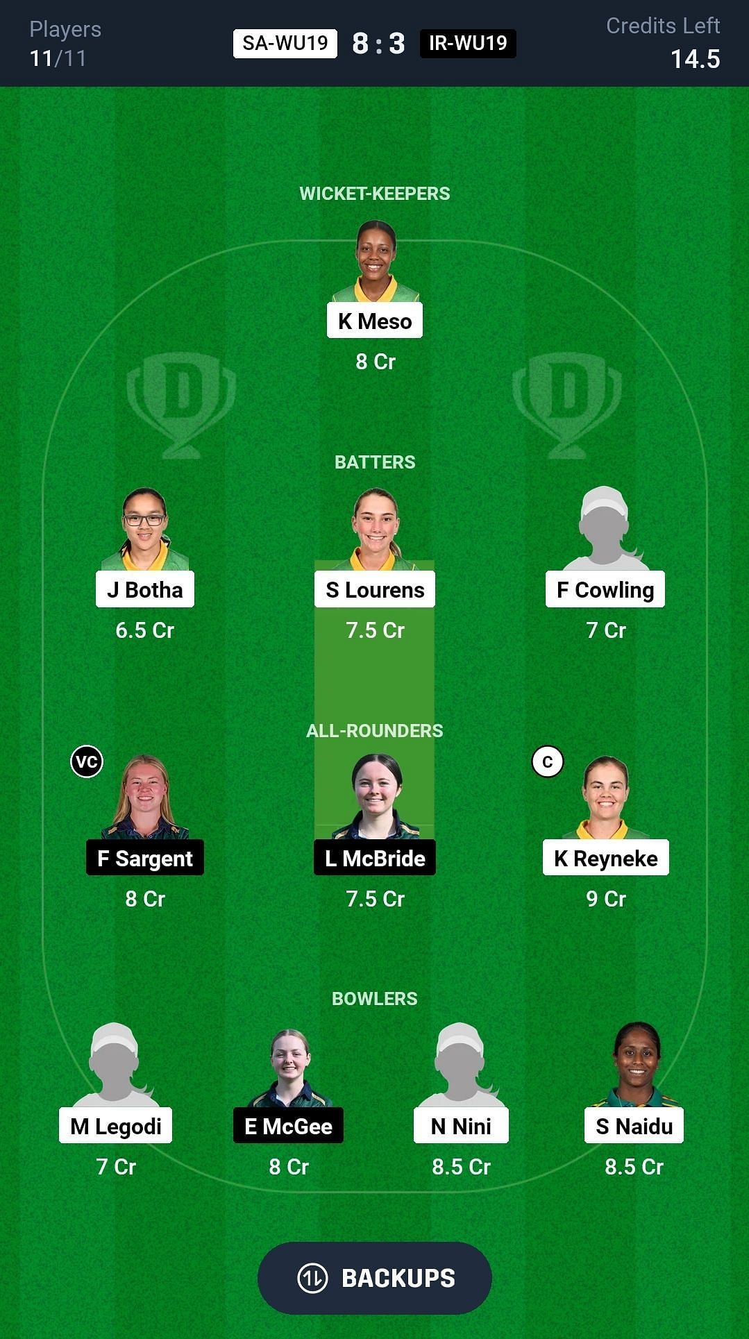SA-WU19 vs IR-WU19 match captain and vice-captain choices