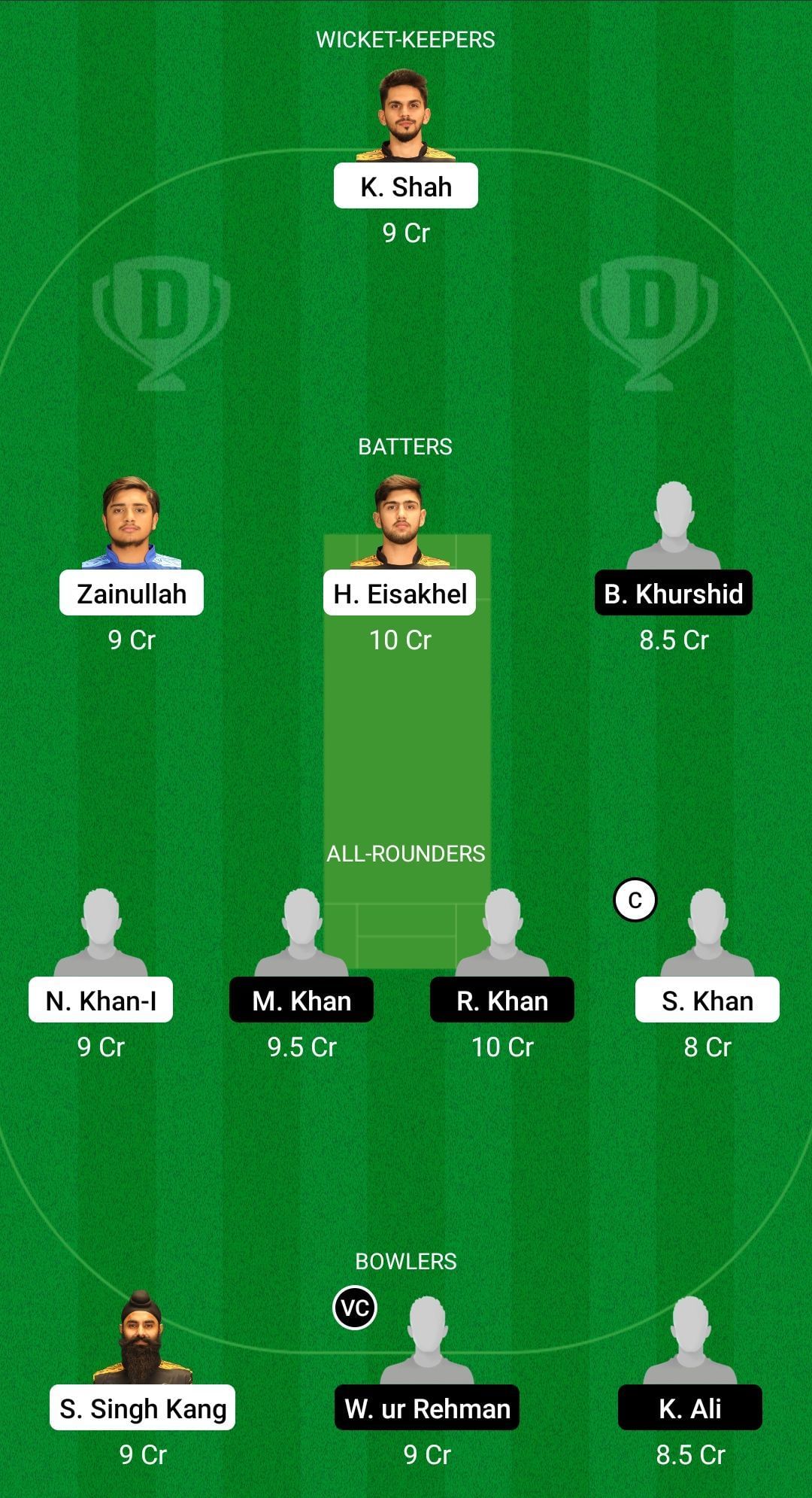 Fantasy Suggestion #1: Khalid Shah, Zainullah, Hassan Eisakhel, Vinod Raghavan, Niaz Khan, Muzamil Khan, Rehan Khan, Sher Khan, Simranjeet Singh Kang, Wasee ur Rehman, Burhanudin Sabir.