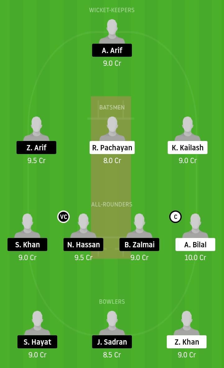 Fantasy Suggestion #1: A Arif, Z Arif, R Pachayan, K Kailash, S Khan, N Hassan, B Zalmai, A Bilal, S Haya, J Sadran and Z Khan.