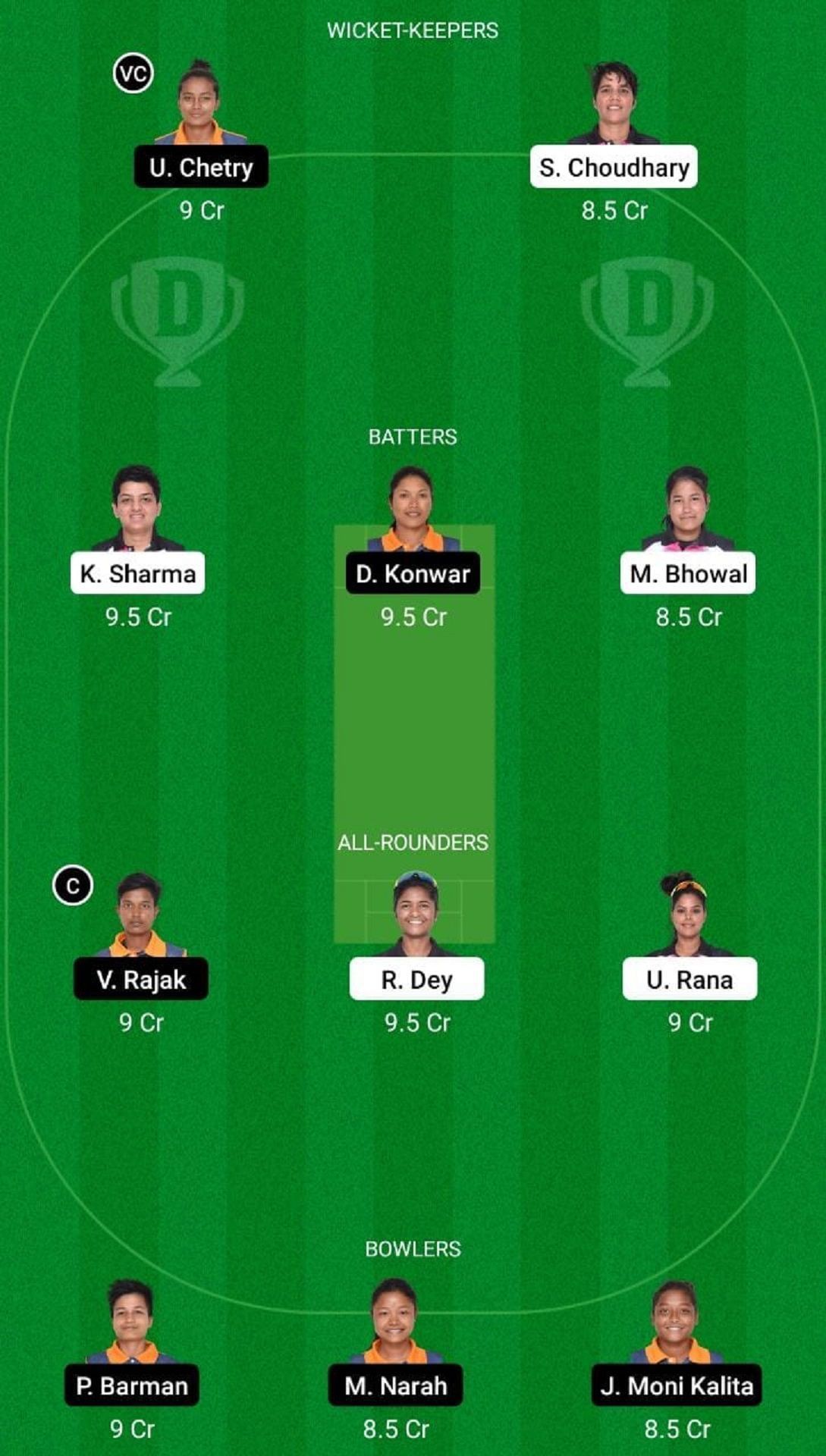 Fantasy Suggestion #2: U Chetry, S Choudhary, D Konwar, K Sharma, M Bhowal, R Dey, V Rajak, U Rana, M Narah, J Moni Kalita, P Barman