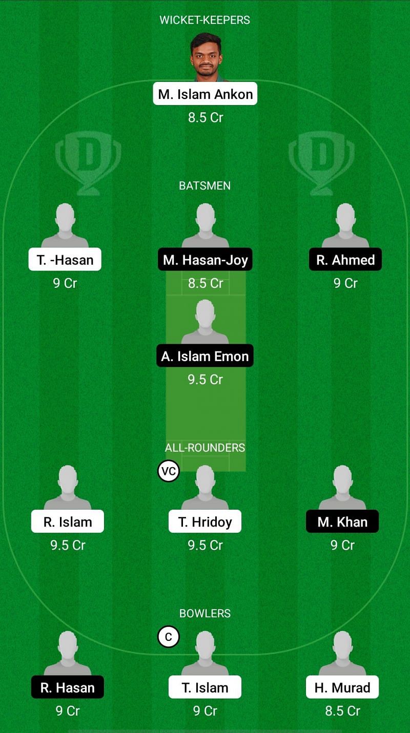Fantasy Suggestion #1: Mahidul Islam Ankon, Tanzid Hasan, Mahmudul Hasan Joy, Rakin Ahmed, Anisul Islam Emon, Robiul Islam Robi, Towhid Hridoy, Mohimenul Khan, Rakibul Hasan, Tanvir Islam, Hasan Murad.