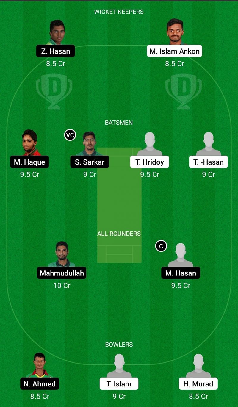 Captain: Mahedi Hasan. Vice-captain: Soumya Sarkar