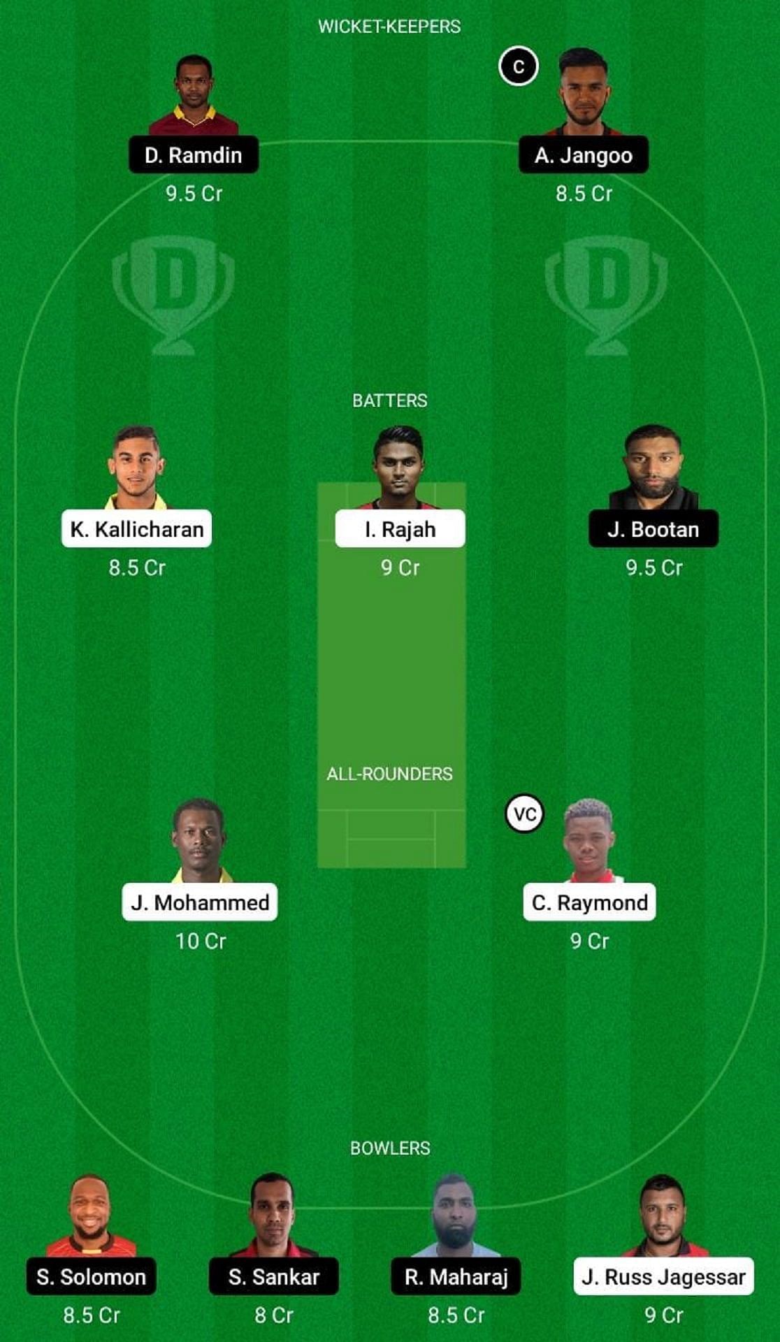 Fantasy Suggestion #1: A Jangoo, D Ramdin, J Bootan, I Rajah, K Kallicharan, C Raymond, R Brijlal, J Mohammed, S Solomon, R Maharaj, J Jagessar