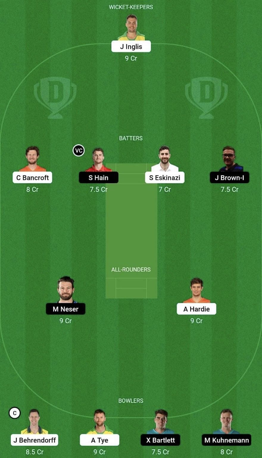 Stevie Eskinazi, Cameron Bancroft, Aaron Hardie, Josh Inglis (wk), Ashton Turner, Nick Hobson, Cooper Connolly, Andrew Tye, Jason Behrendorff, Peter Hatzoglou and David Payne.