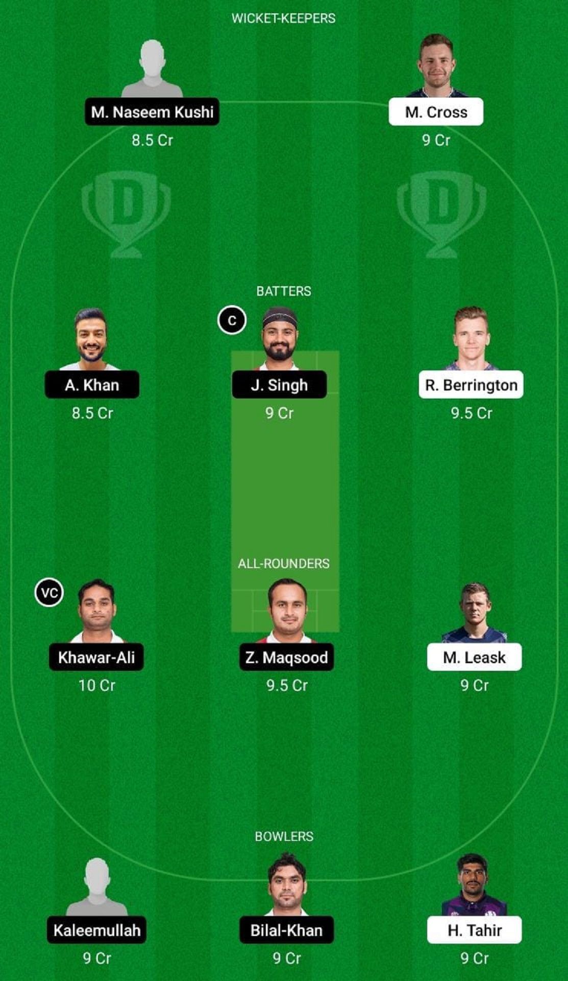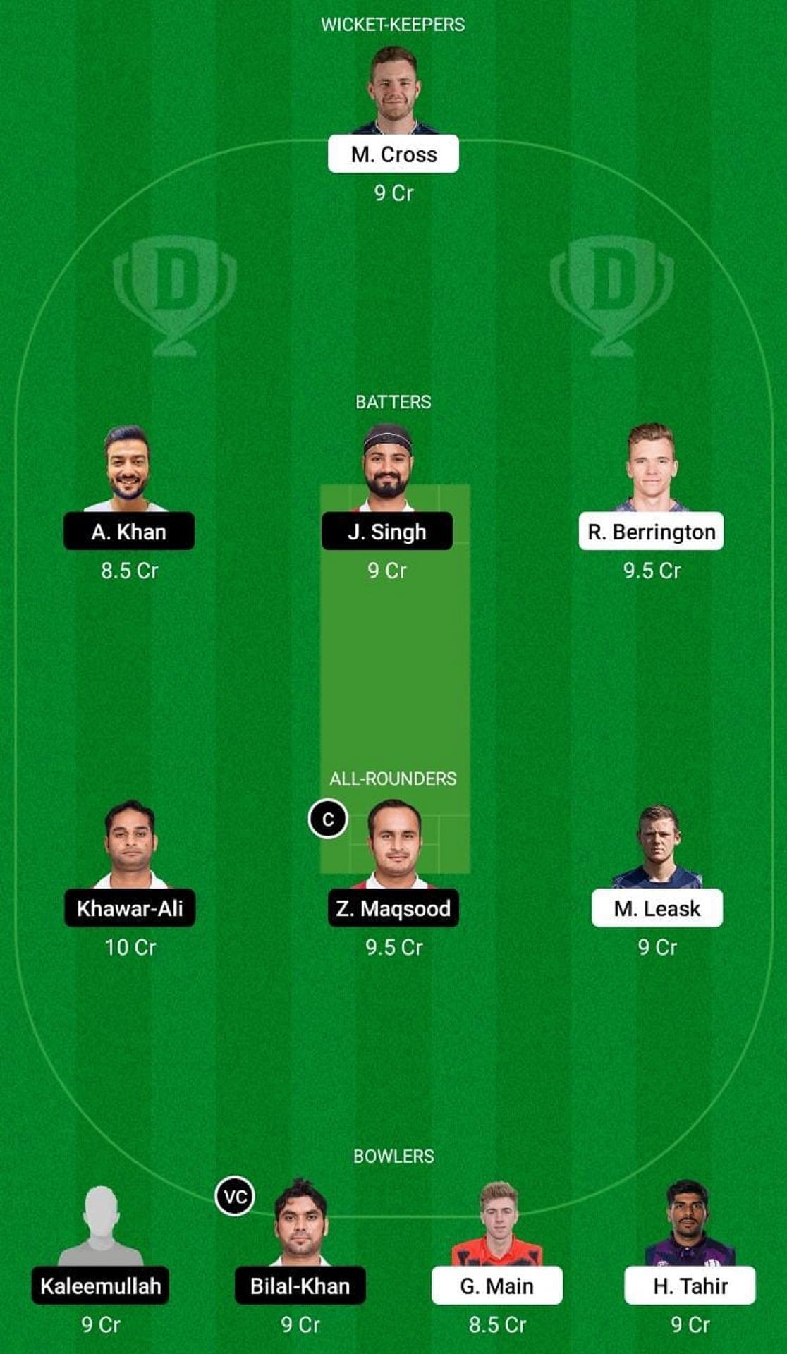 Fantasy Suggestion #1: M Cross, J Singh, A Khan, R Berrington, Z Maqsood, K Ali, M Leask, B Khan, Kaleemullah, H Tahir, G Main.