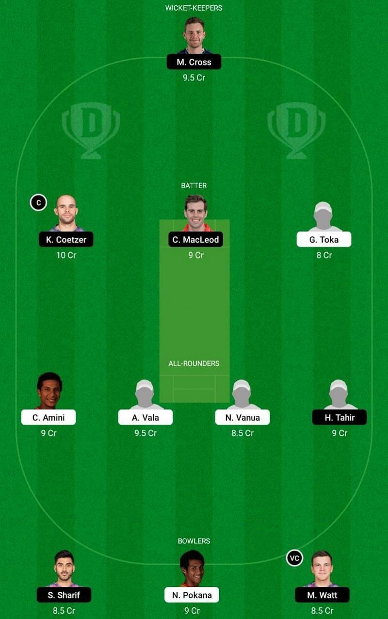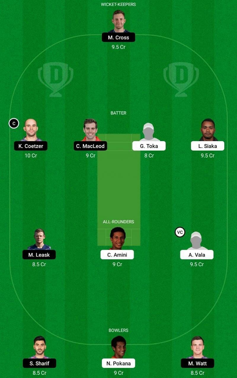 Fantasy Suggestion #1: M Cross, C MacLeod, K Coetzer, L Siaka, G Toka, A Vala, C Amini, M Leask, M Watt, S Sharif and N Pokana