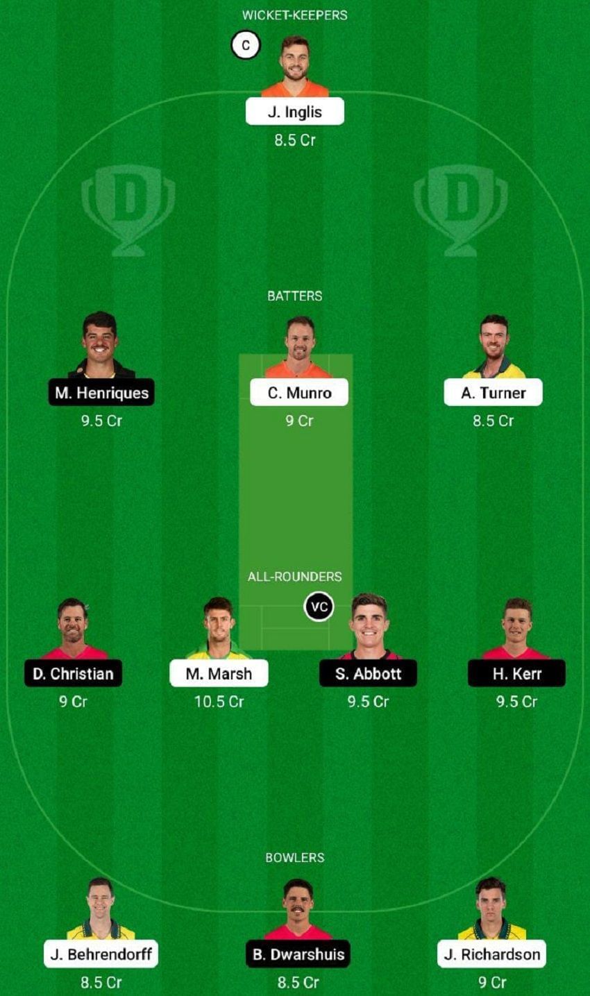 Fantasy Suggestion #2: Josh Inglis, Moises Henriques, Kurtis Patterson, Justin Avendano, Daniel Christian, Mitchell Marsh, Sean Abbott, Hayden Kerr, Peter Hatzoglou, Ben Dwarshuis and Jhye Richardson