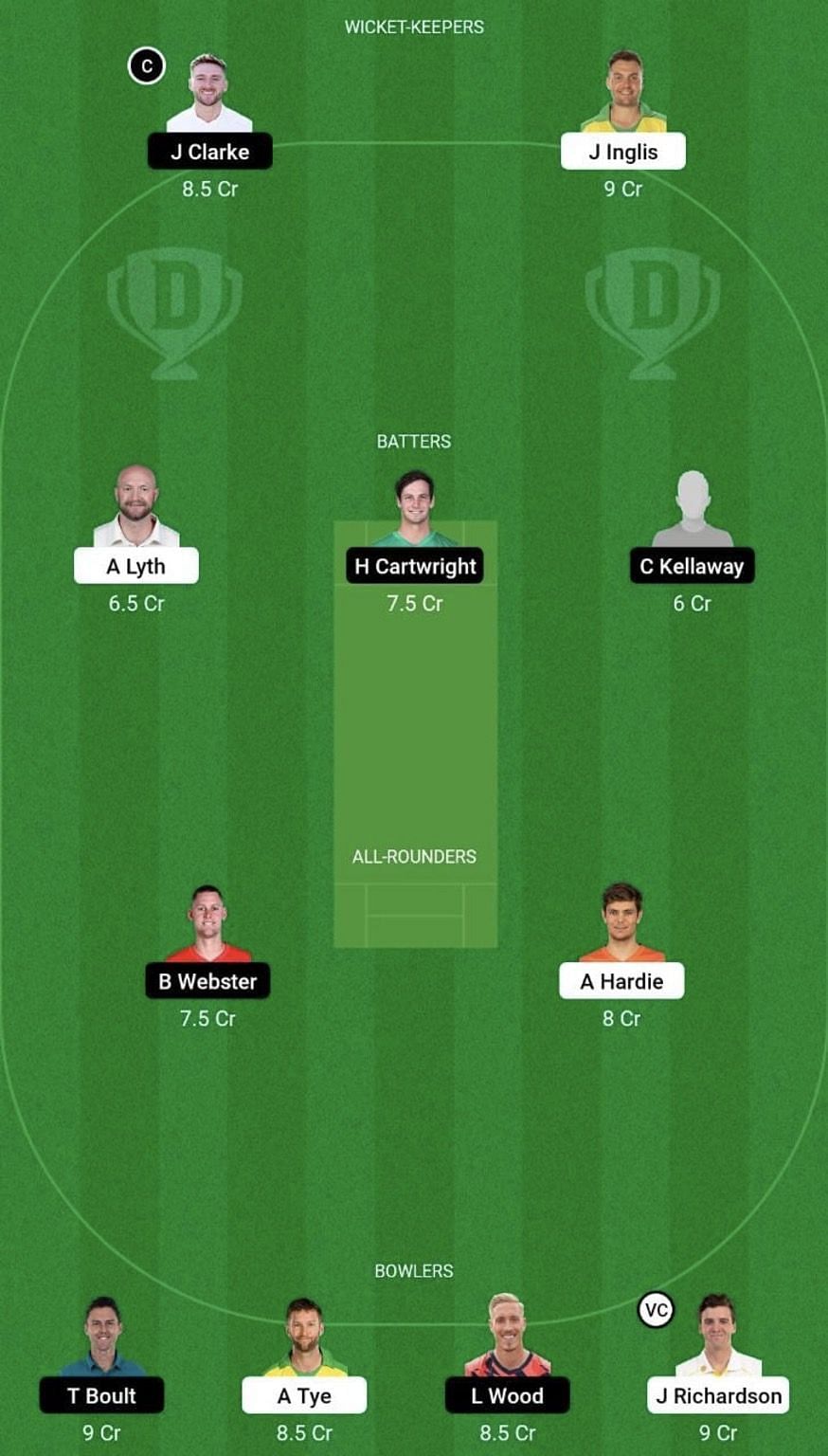 Bowlers: Trent Boult, Jhye Richardson (vc), Andrew Tye, Luke Wood