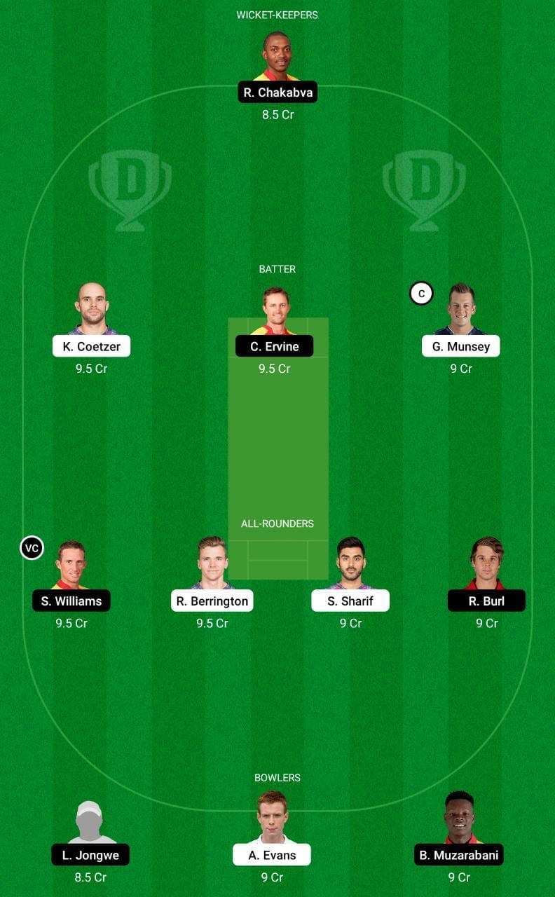 Fantasy Suggestion #2: R Chakabva, K Coetzer, C Ervine, G Munsey, R Berrington, S Sharif, S Williams, R Burl, B Muzarabani, L Jongwe and A Evans