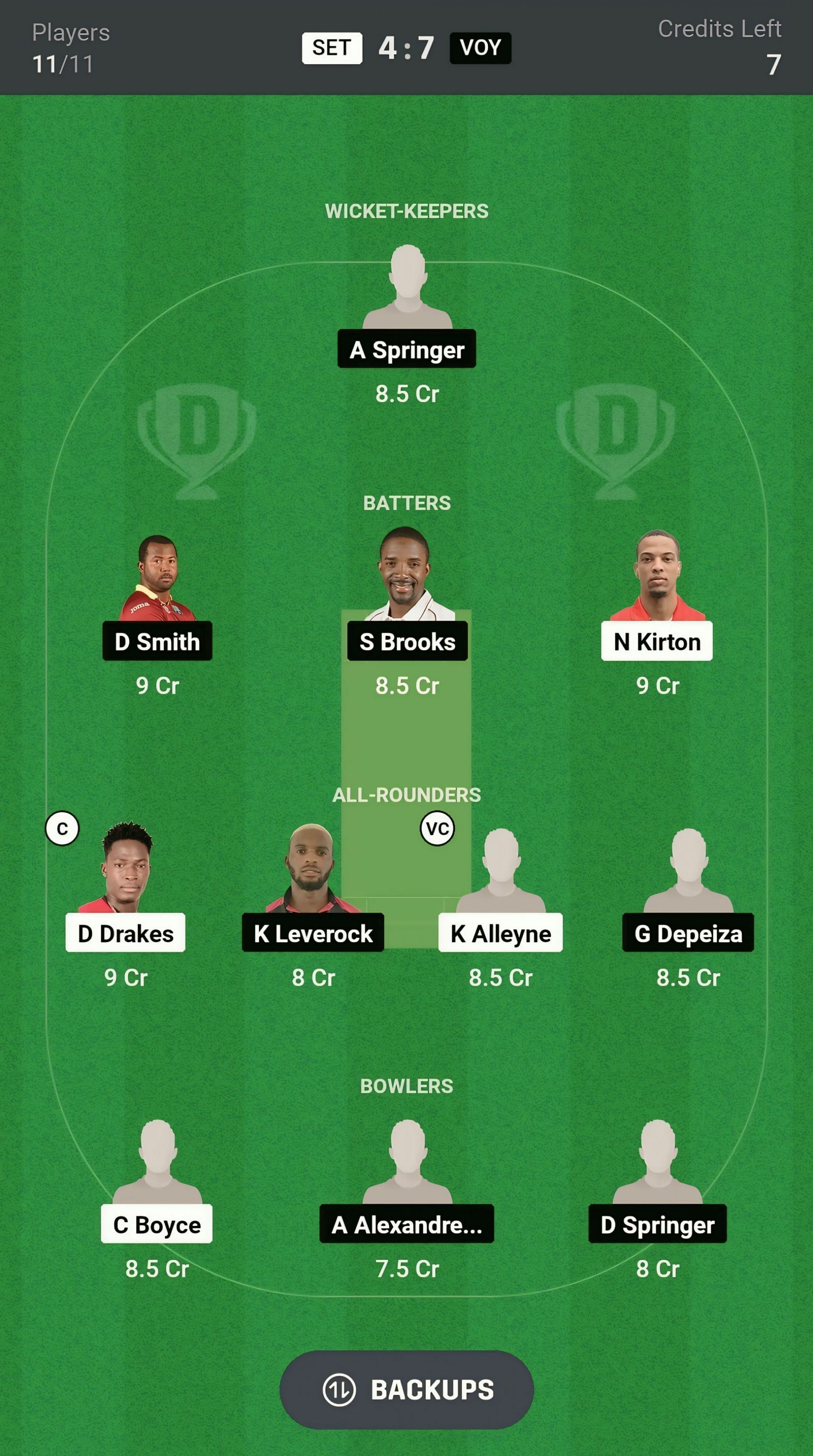 The top bowler picks for today's Dream11 team are C Boyce and D Springer. Both the pacers can take a lot of wickets at this venue. D Springer has an exceptional venue record and can take a lot of wickets in today's match. A Alexandre is another good bowler for today's match.