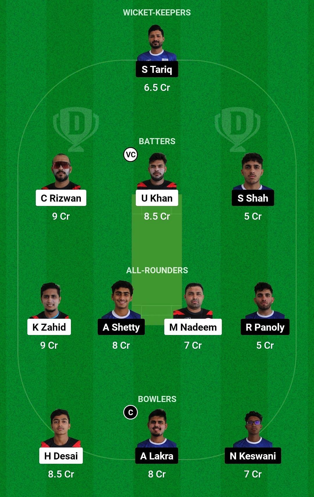 Sharjah Probable Playing XI: Ashwant Valthapa, Muhammad Saghir Khan, CP Rizwan, Usman Khan, Fayyaz Ahmad, Khalid Shah, Mohammad Nadeem, Harsh Desai, Karnal Zahid, Ata Ullah (c), Hilal Afghan.