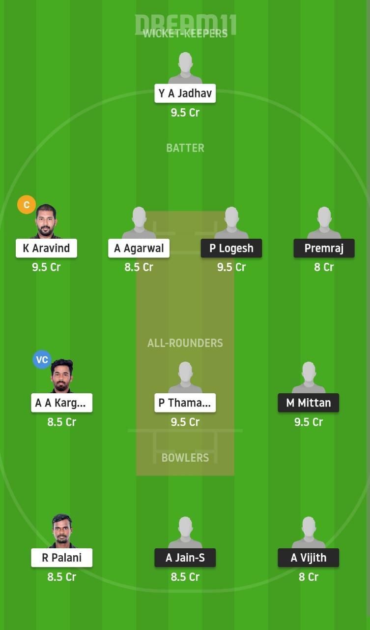 Fantasy Suggestion #2: Y A Jadhav, K Aravind, A Agarwal, P Logesh, Premraj, P Thamaraikannan, M Mittan, A A Kargave, A Jain, R Palani, A Vijith