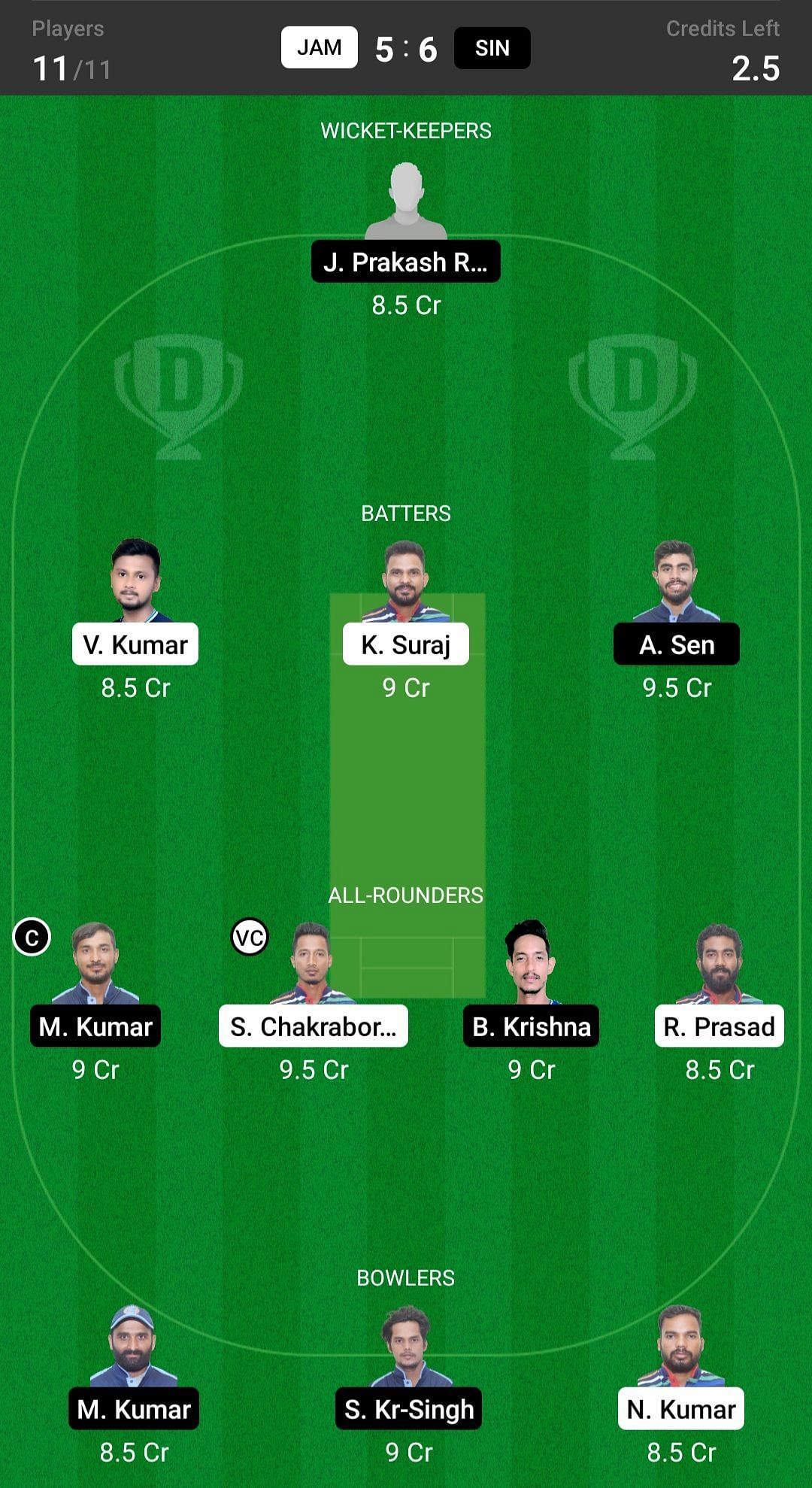 SIN vs JAM Dream11 Prediction Today (BYJU's Jharkhand T20 2022)