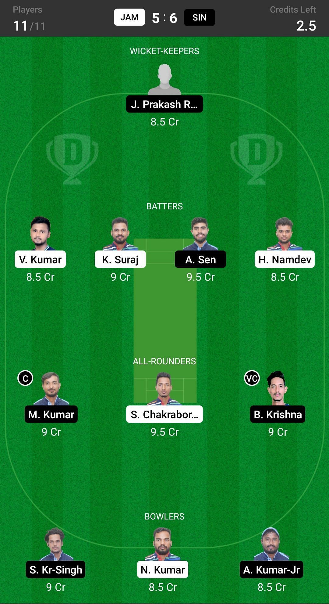 Fantasy suggestion #1: J Prakash, V Kumar, K Suraj, A Sen, H Namdev, S Chakraborty, B Krishna, M Kumar, S Kr Singh, A Kumar Jr, N Kumar