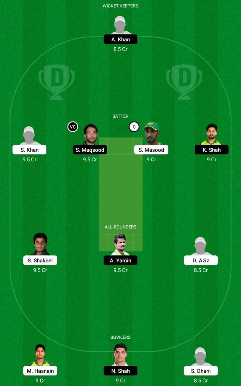 Captain: Shan Masood. Vice-captain: Sohaib Maqsood