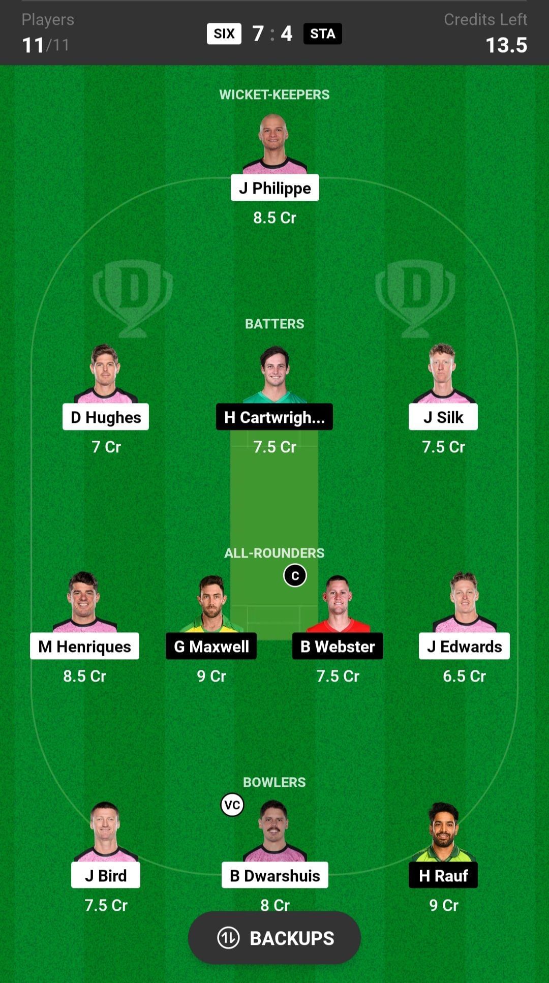 One should try to make a balanced team. Still, the Sydney Sixers look like a tough opponent and might win the match.