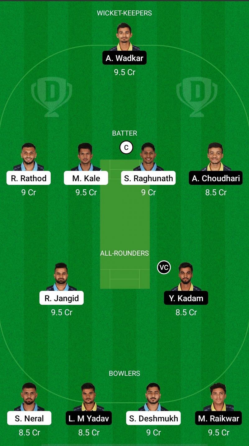 Fantasy Suggestion #1: Akshay Wadkar, Mohit Kale, R Sanjay, Aniruddha Choudhari, Avesh Sheikh, Ravi Jangid, Akshay Dullarwar, Yash Kadam, Lalit Yadav, Shanmesh Deshmukh, Mehul Raikwar.