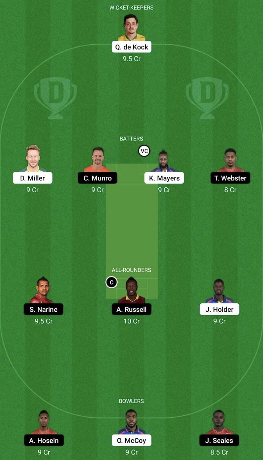 Sunil Narine, Tion Webster, Nicholas Pooran, Colin Munro, Tim Seifert (wk), Kieron Pollard, Andre Russell, Anderson Phillip, Akeal Hosein, Jayden Seales and Shaaron Lewis.